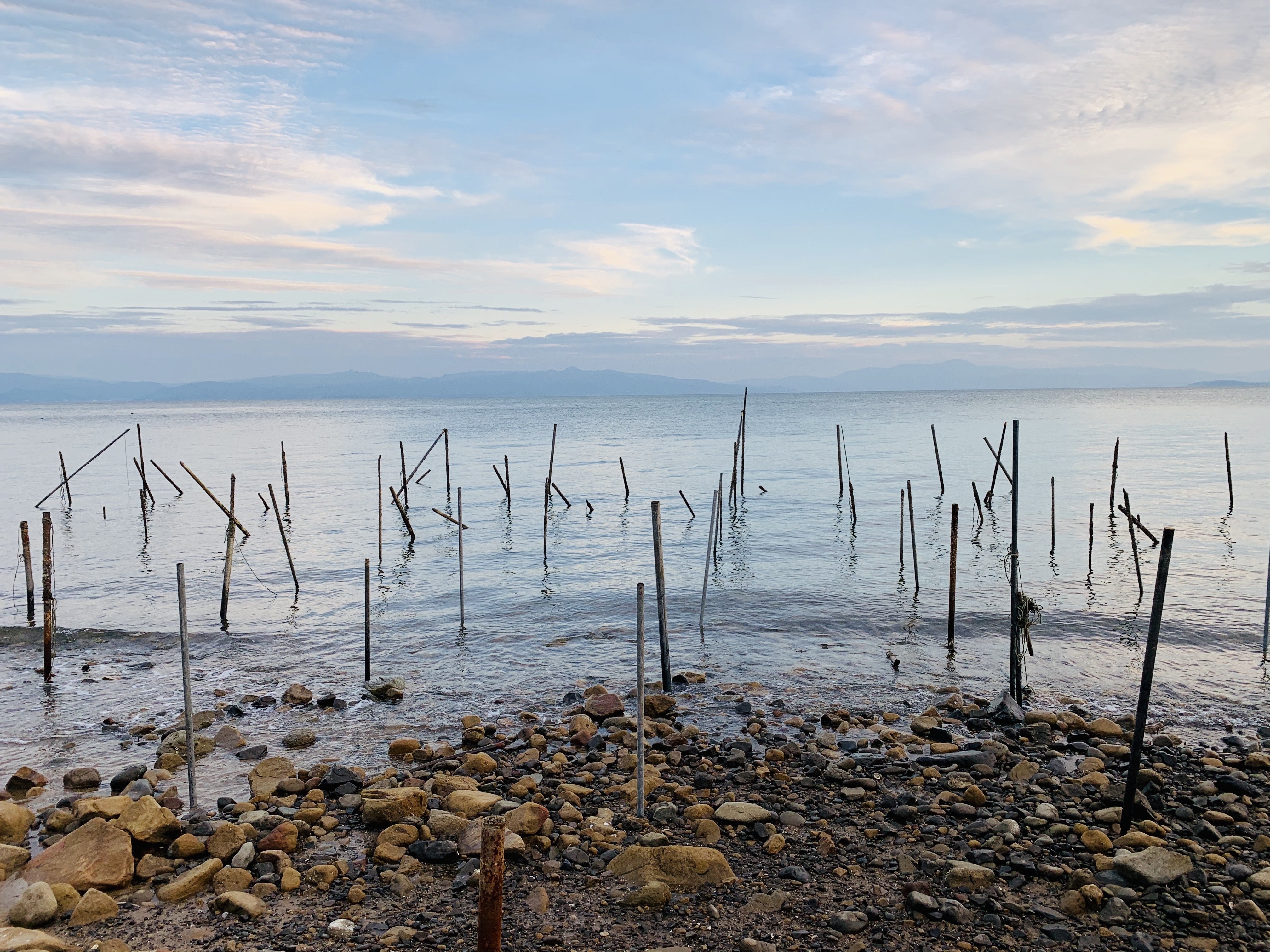 2020/09/22 19:48久しぶりに活動報告をアップします。連日杭打ち作業を続けており、なかなか更新できずでした。先日の活動報告でアップした漁場以外の漁場も、台風による高波、また高波と一緒に海岸線に打ち寄せた巨大な流木の影響で杭がほとんど折られており、父と2人で連日杭打ち作業を続けております。昼夜を問わず、潮が引き始めてまた満ちるまでの間、発電機を浜辺に運び、パイプを切り出し、ドリルで岩・地面に穴をあけ、ハンマーでたたき、毎日数十本の杭を打っていますが、まだまだ終わりが見えません・・・・。9月末から始まる「菌取り」に向けて、大雨で被害を受けた漁場も復旧を進めておりますが、生態系の変化等により菌取りが上手くいくかわからないため、他の漁場でも菌取りを実施すべく、菌取りに使う岸側の杭を優先的に打ちこんでいますが、還暦手前の父の体も限界で悲鳴を上げており、肩が上がらくなってきました。針治療とロキソニンを服用しながらなんとか続けています。ですが、沖側の杭は全く手つかず・・・。写真のように倒れたままです・・・。そして昼の満潮の時間帯は、菌取り用の網の準備。休む暇がありません。そんな中、状況を知った神戸・大分の親戚がこの連休を使って、助っ人として駆けつけてくれました。涙が出るほどうれしかったです。建築関連の仕事をする親戚は器具の使い方もお手のもので、4人で一気に杭を打ち込みました。一昨日からの2日間で約100本以上の杭を打ち込み、何とか菌取りに間に合わせる目処が立ちました。まだまだ作業は続きますが、皆様の応援を励みに頑張っていきたいと思います。 もっと見る