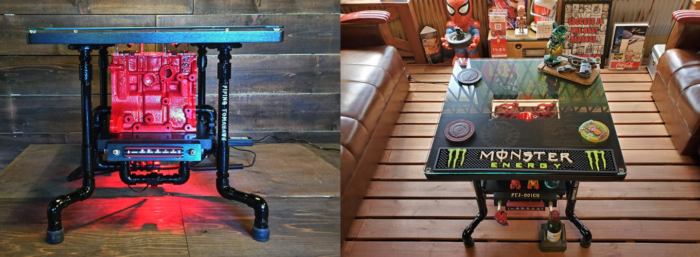 「Art Gallery/アートギャラリー」 では、ガス管と自動車のエンジンを使用したサウンドテーブルなど、モノづくりが主体となる事業を展開しています。