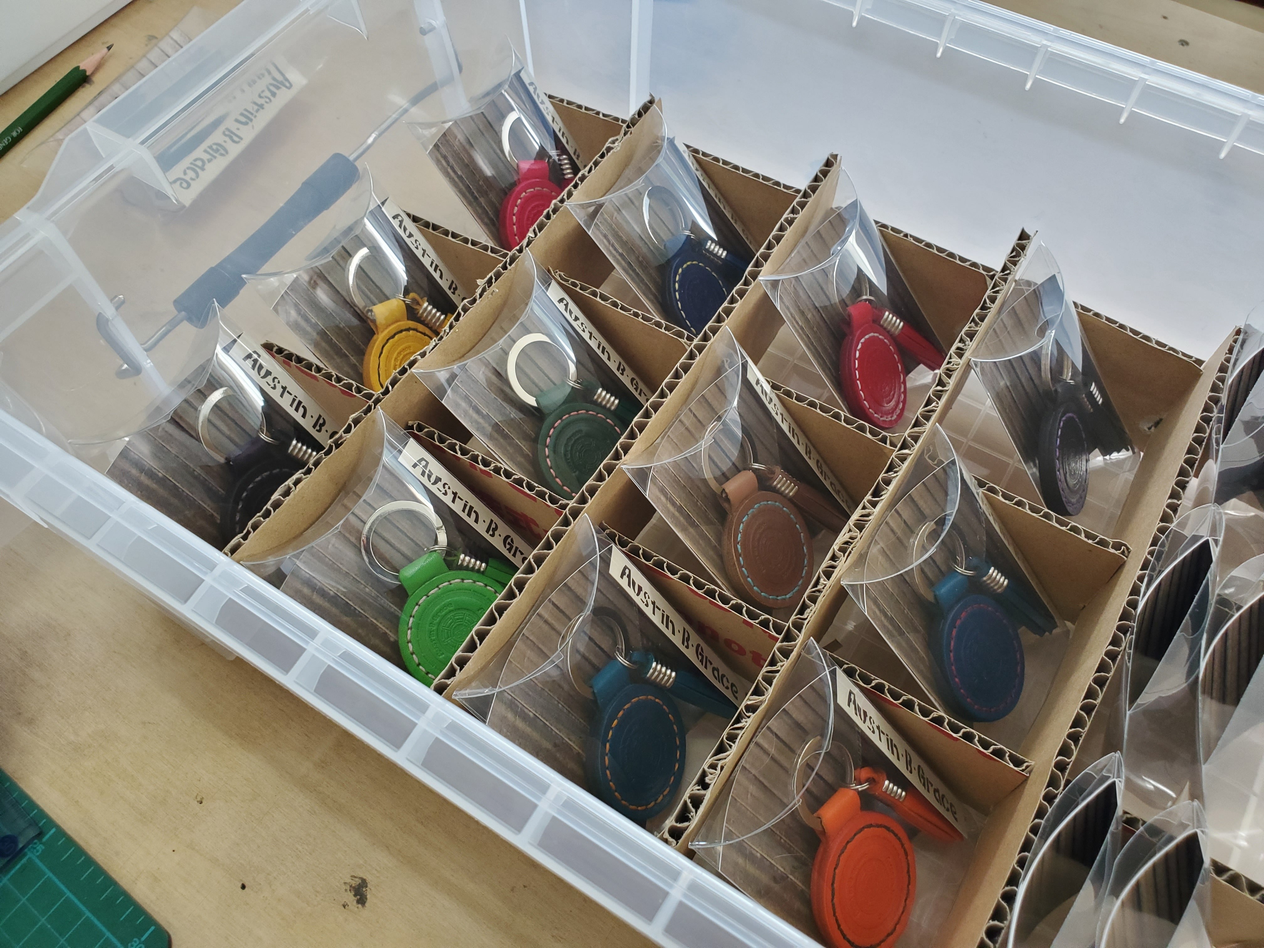 こんにちは。本日、レザーアイテムのパッケージ印刷も完成し、出来上がった商品から順に箱詰めをしてます。レザーアイテムは一足早く、9月2日にオンラインショップ「AGの隠れ家 楽天市場店」にて販売予定です。オンラインショップは現在準備中です。ステッカーも本日印刷に入りましたので、9月上旬には完成したものをご紹介できると思います。それでは引き続き応援宜しくお願いいたします。