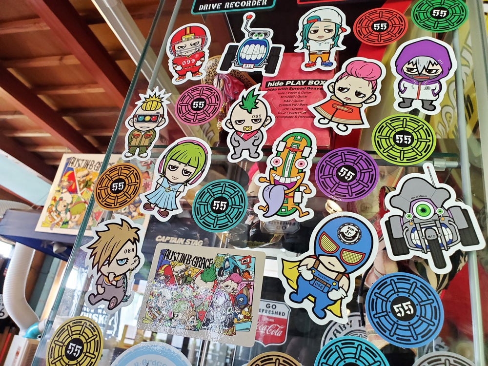 こんにちは。本日、キャラクターステッカーと55マークステッカー完成しました。素材は屋外でも使用可能な白塩ビで作っています。表面は色落ち、摩耗、劣化防止のため、光沢ラミネート加工済みです。さっそくべたべたとガラスケースに貼ってみました。イラストがはじめて商品として形になりました♪商品パッケージも間もなく完成です。サイズ■キャラクター:約60mm×90mm■マークステッカー:直径50mmロゴマークステッカー、モンスターインカーステッカー、ドラレコステッカー&マグネットも完成してますので、画像をご用意して次回ご紹介します!!それでは引き続き応援宜しくお願い致します。