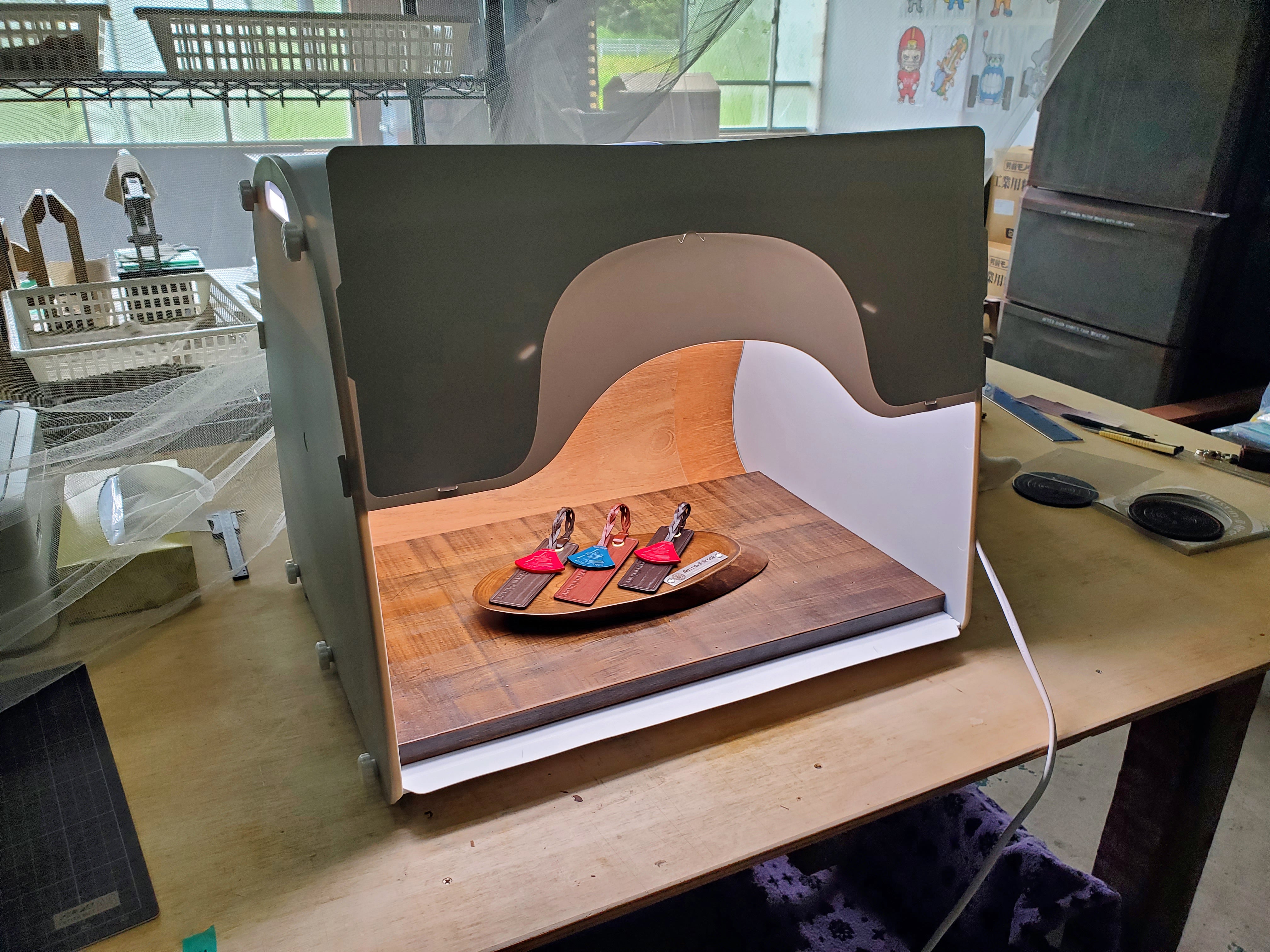 こんにちは。AGcreateです。本日は朝からPhotoshopで画像編集しながら、リターン商品を含めたレザーアイテムの撮影を行っています。クラウドファンディング後には、弊社オンラインショップ「AGの隠れ家 楽天市場店」にて販売予定です。現在は出来上がっているレザーアイテムを順番に撮影して、オンラインショップ 内の画像準備も着々と進んでおります。【お知らせ】8/12日に追加のリターン商品として「本革ブックマーカー」をご用意させていただきました。詳細をご紹介させていただきます。こちらの「本革ブックマーカー」 もキーホルダー同様に牛革のタンローを使用し、手染め手縫いにて一つずつ製作を行っています。サイズは厚み2mm、幅約3.5mm、長さ約11.5mmです。ブックマーカーはできるだけ薄く、そして強度のあるものを製作したかったので1mmの革を貼り合わせています。また貼り合わせ前に木材のような落ち着いた風合いを出すため、木目調の型押しでデザインを構成しています。先端には編み込んだ革紐と、ロゴマークが入った持ち手部分があるため、本を挟んだ時にさりげなく垂れるような作りになっています。ロゴマークのデザインは、読書が趣味のキャラクター「アリー」に因んで特別仕様の刻印を使用しています。▶キャラクターのプロフィール カラーは全3色。女性でも男性でもご使用いただける遊び心満載のブックマーカーです。最後にお問い合わせいただいた「キャラクターカラーの本革キーホルダー」について、より色目が分かりやすい画像をご準備させていただきました。革の染色具合より色目が異なるため、画像とまったく同じ色でお届けはできないかもしれませんが、参考にご覧ください。※033のピンクと099の赤が同じように見えますが、「033ピンクの糸はベージュ」、「099の赤の糸はホワイト」となっています。また066、077、B11のブルーは同じ青系ですが、色味が少し違います。077は緑よりの青、B11は066に比べて少しだけ明るい青です。すべてのカラーは、革の色と糸がキャラクターに因んだ色を使用していますので、この他の組み合わせで今後製作予定はありません。リターンについてお問い合わせいただいた案件は、活動報告内でもできるだけわかりやすくご紹介させていただきます。それでは引き続き応援宜しくお願い致します。