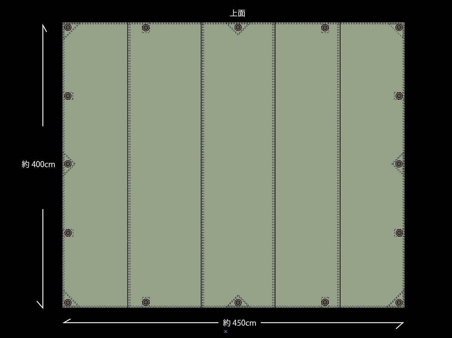 構成はレギュラーの3枚はぎから、5枚はぎにすることで大型タープを実現しています。