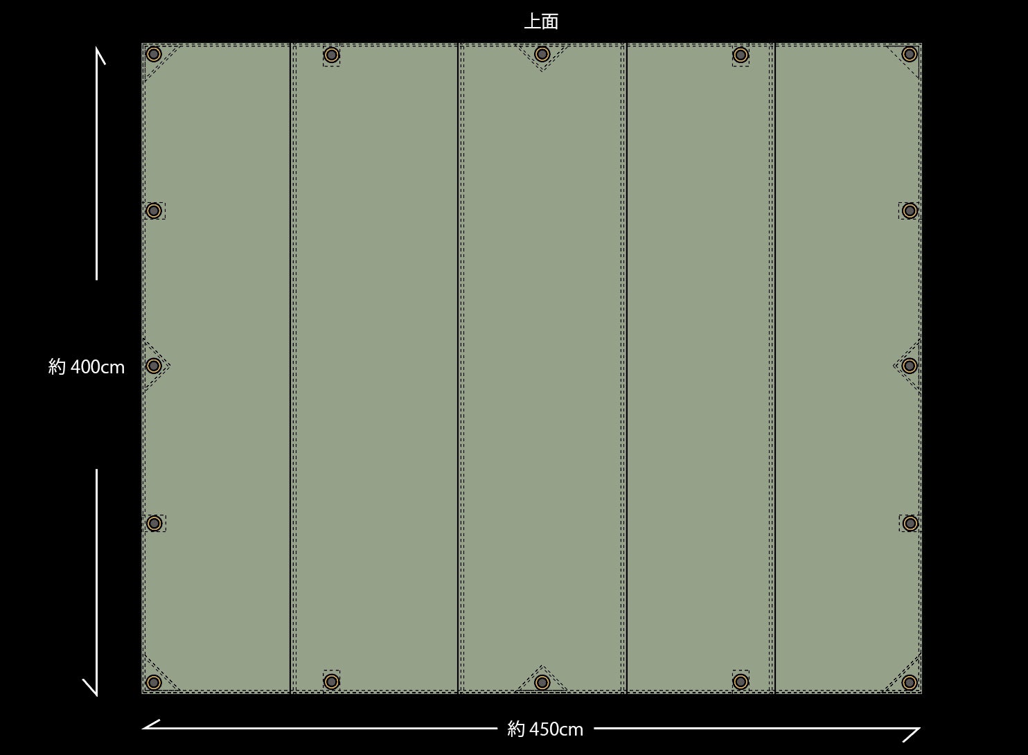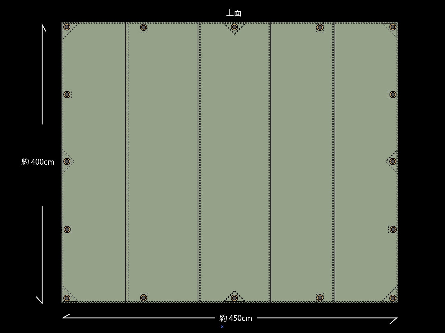 お問い合わせを多くいただいておりました大きいサイズのタープのリターンを追加いたします。構成はレギュラーの3枚はぎから、5枚はぎにすることで大型タープを実現しています。ファミリー、大人数でのくつろぎの場所を作るには良い大きさだと思います。こちらも裏側アイレットの補強は極厚帆布3号帆布とコットンテープでしっかり行います。こちらもご検討いただけますと幸いです!CULTURE BANK 山本