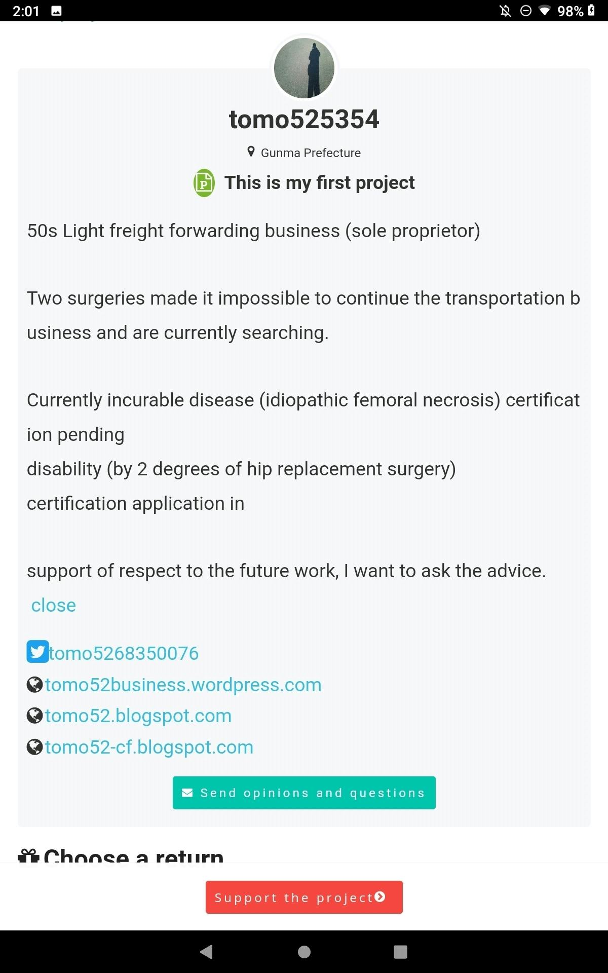 今回のプロジェクトは、活動費、諸経費(法人の立ち上げも必要だと思います)などのお金も大事ですが、協力者が同じくらい大事だと思います。