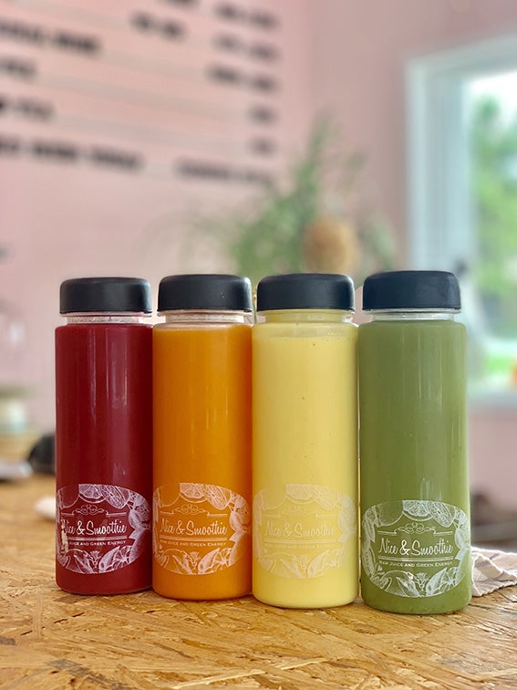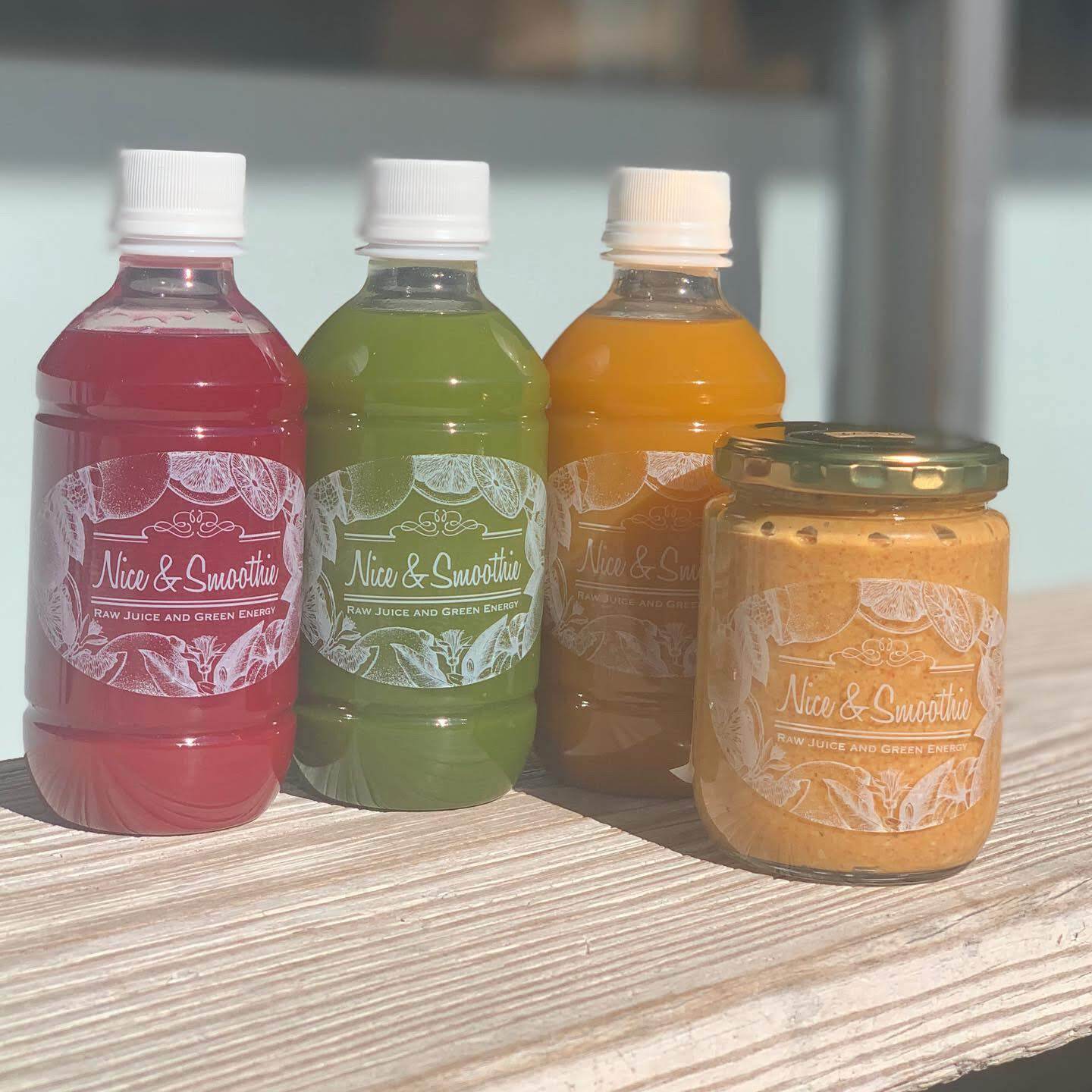 Nice & smoothieのスロージュースの特徴は、6種類以上の食材をかけ合わせ、ハーブを必ず1種類は調合するという、ハーバル感の強い類稀な調合となっています。お水を一切使わずに、野菜と果物とハーブを絞っただけの絞り汁は、消化器官の臓器への吸収率も高く、飲むごとに細胞レベルが潤う感覚を堪能できます。6種類以上使用するのには理由があって、その素材の多さから調合して冷蔵保存中に栄養素の熟成がすすみ化学変化を起こして味に風合いが出て美味しさが増します。そんなこだわりを持ったNIce & Smoothieのスロージュースを是非体感してみてください。