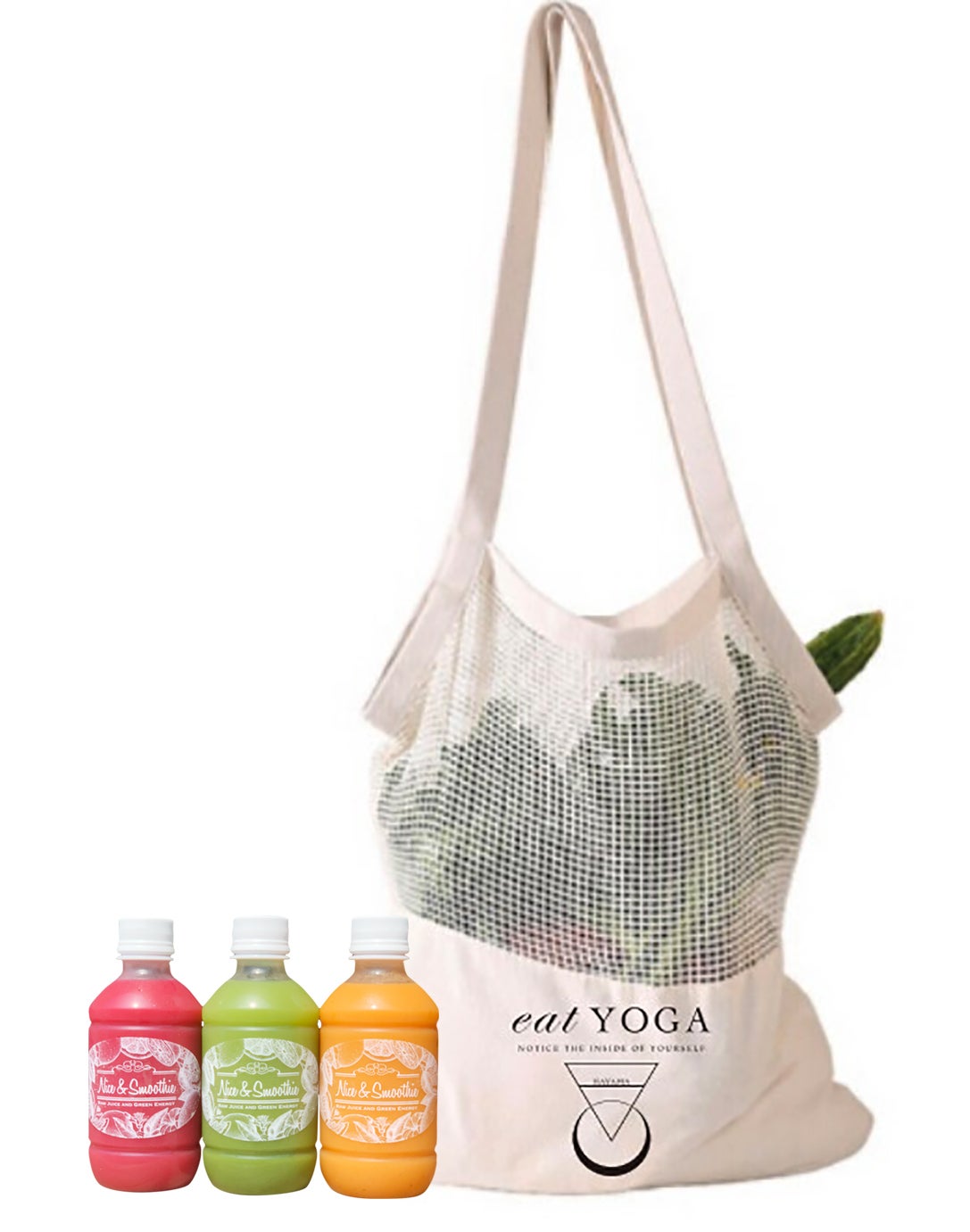 ○eatYOGAロゴ入りオーガニックコットンエコバック +お試しジュース3点セット