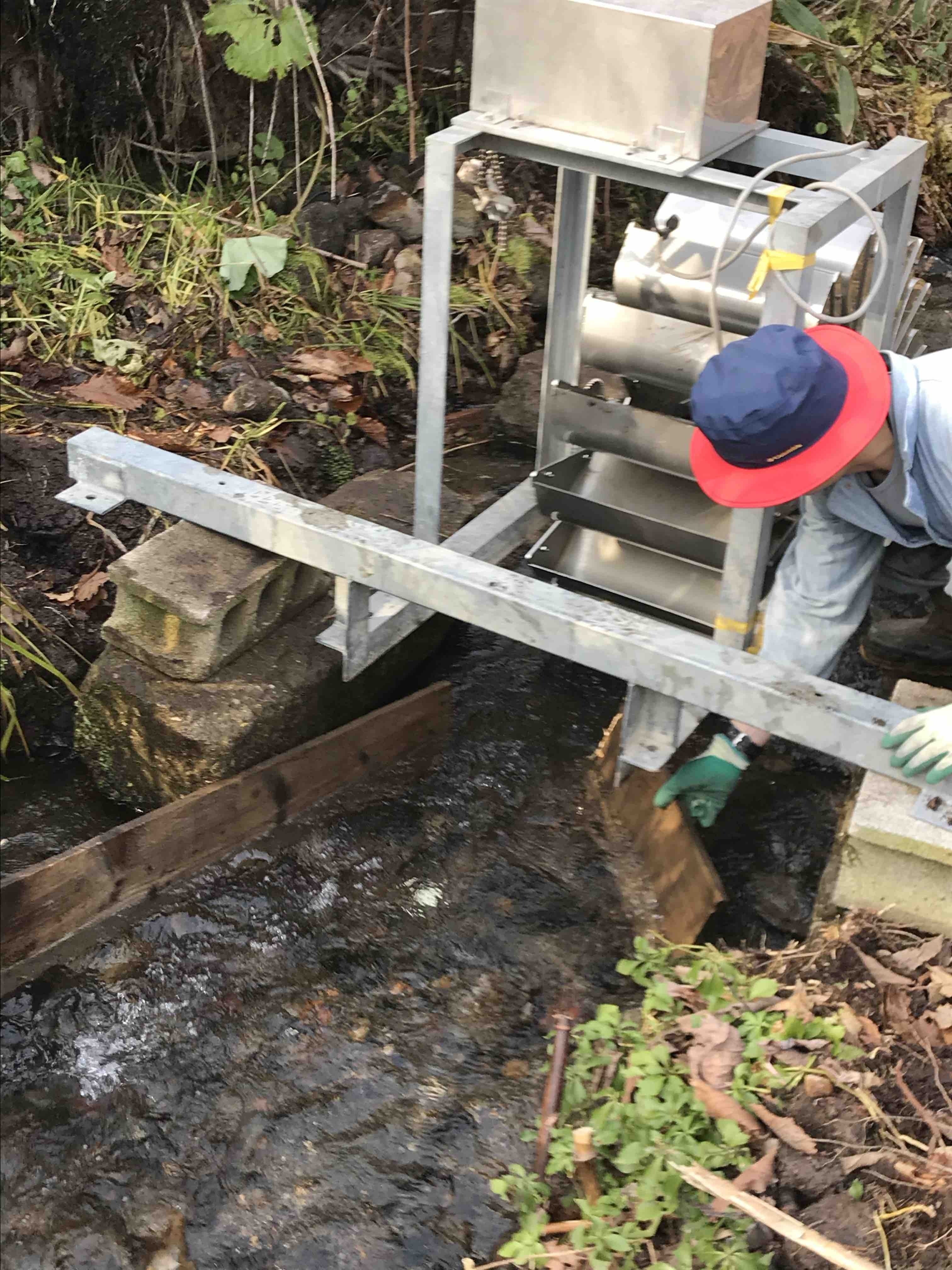 設置部を見直してみた結果、水車部の動作が確認できました!が、もう少し水車の回転が欲しいかなと…。課題としてもう少し調整が必要ですね。