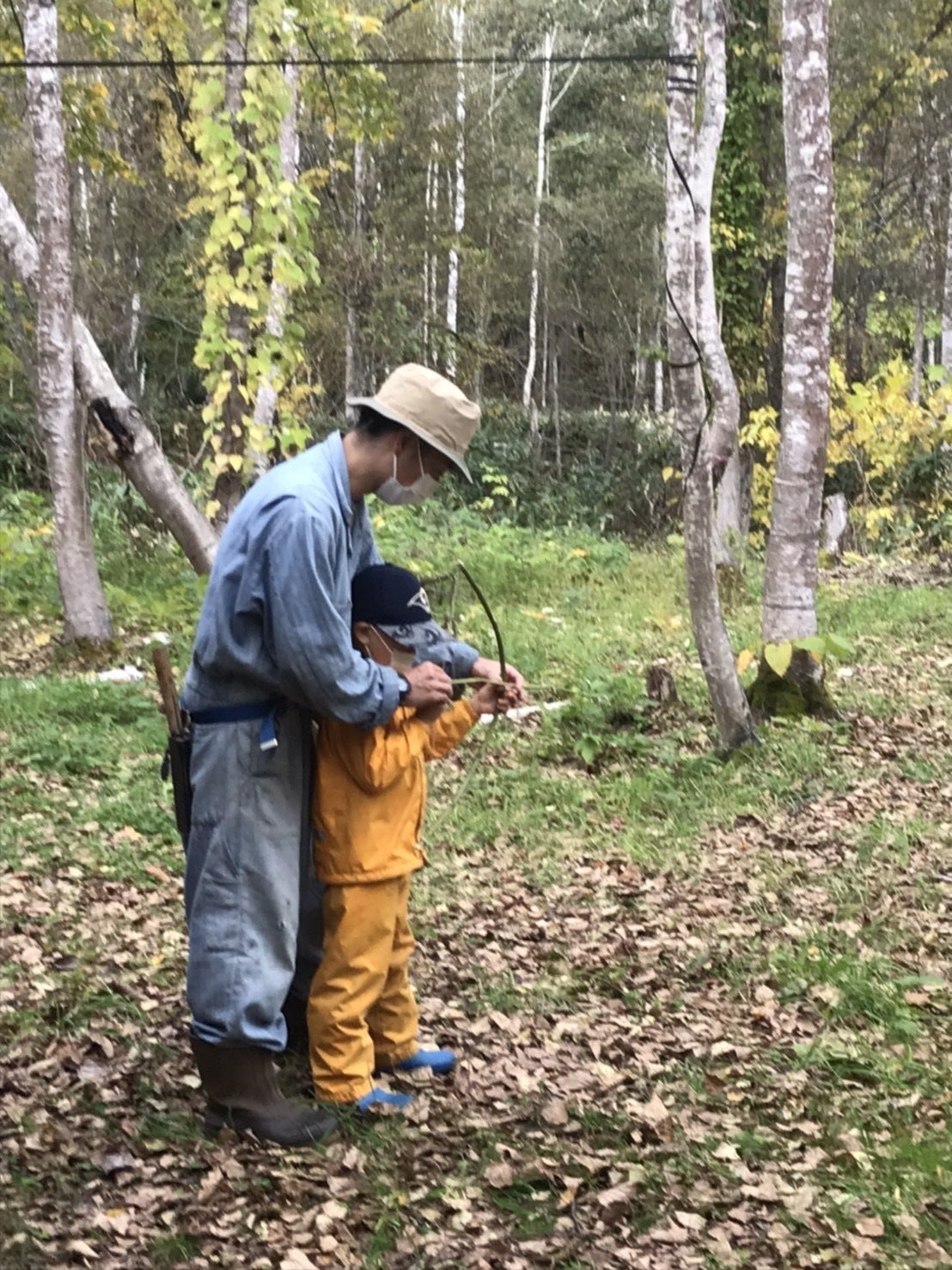 札幌からいらっしゃった3組のご家族が森遊び体験を楽しみました。森の手作り遊具や弓矢作りなど落ち葉の森を満喫していました。初めはおっかなびっくり?でも、どんどん慣れてきてそれぞれ独自の遊び方を見つけていきます。子供達の成長と吸収力には驚かされます!私も見習わないと(汗