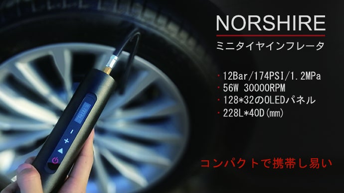 弊社のミニ空気入れ【NORSHIRE】はスマートな管理システムやOLEDパネルを搭載し、安全性を確保している。コンパクトなミニサイズで楽に持ち運べ、車のどこにも収納できる。コードレスで場所を取らず携帯用に向かっています。