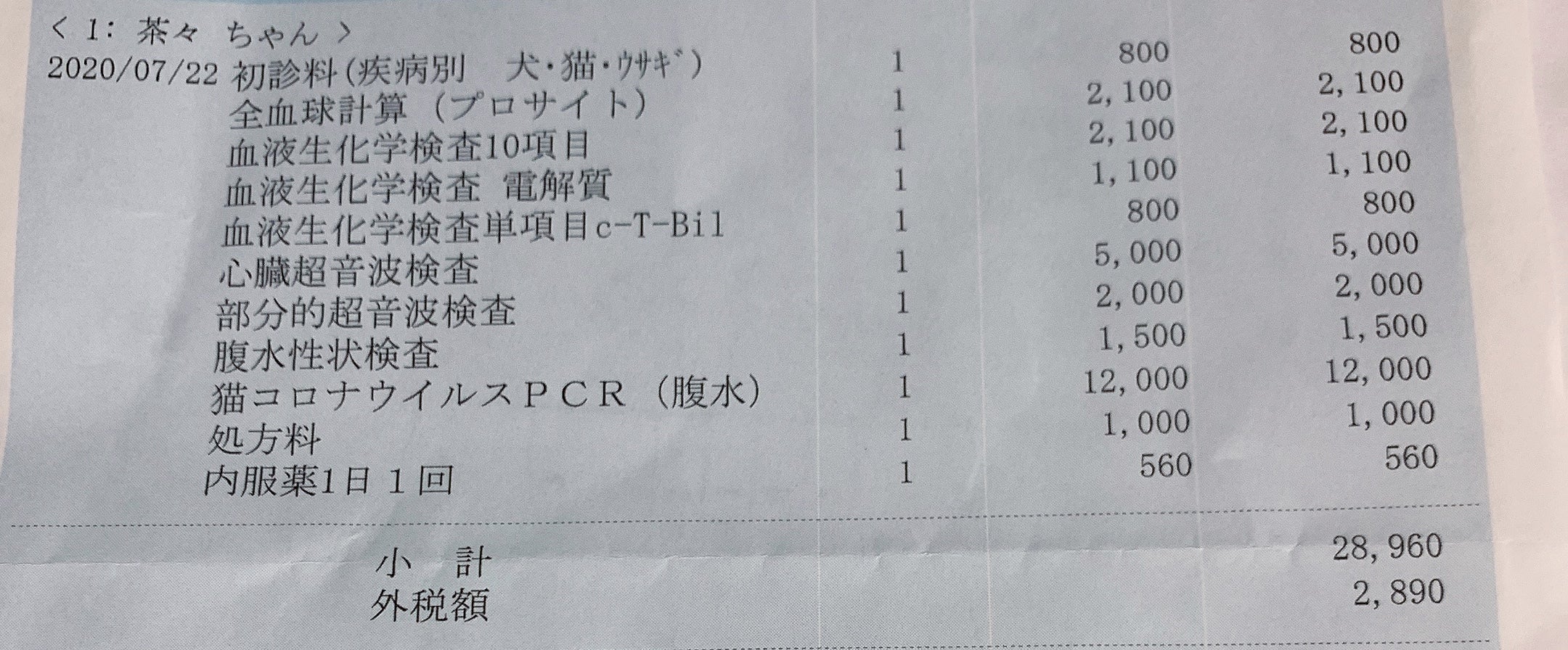 最初はかかりつけ医の先生からFIPかもしれない、FIPである場合は数ヶ月で40万円くらいの治療費用がかかりますと告げられました。