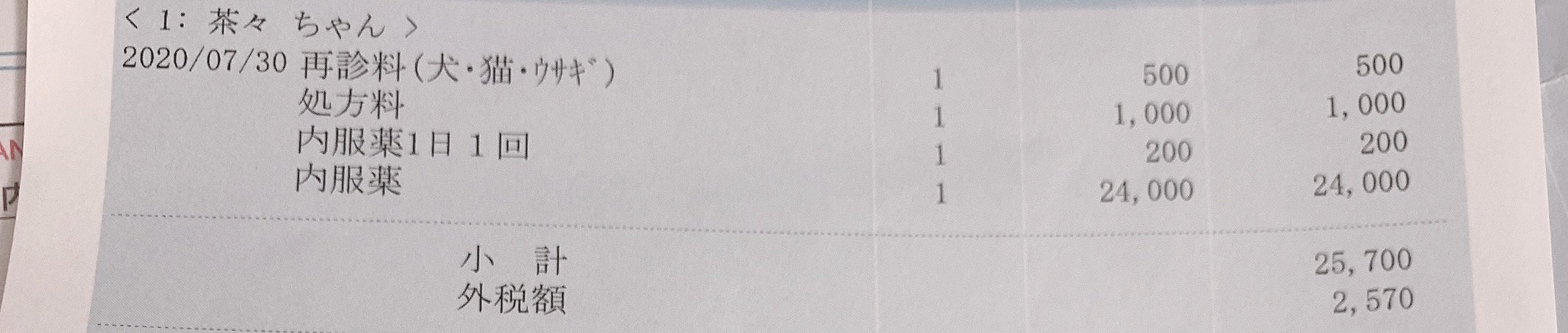 ~ 初回、4錠投薬時の領収書~
