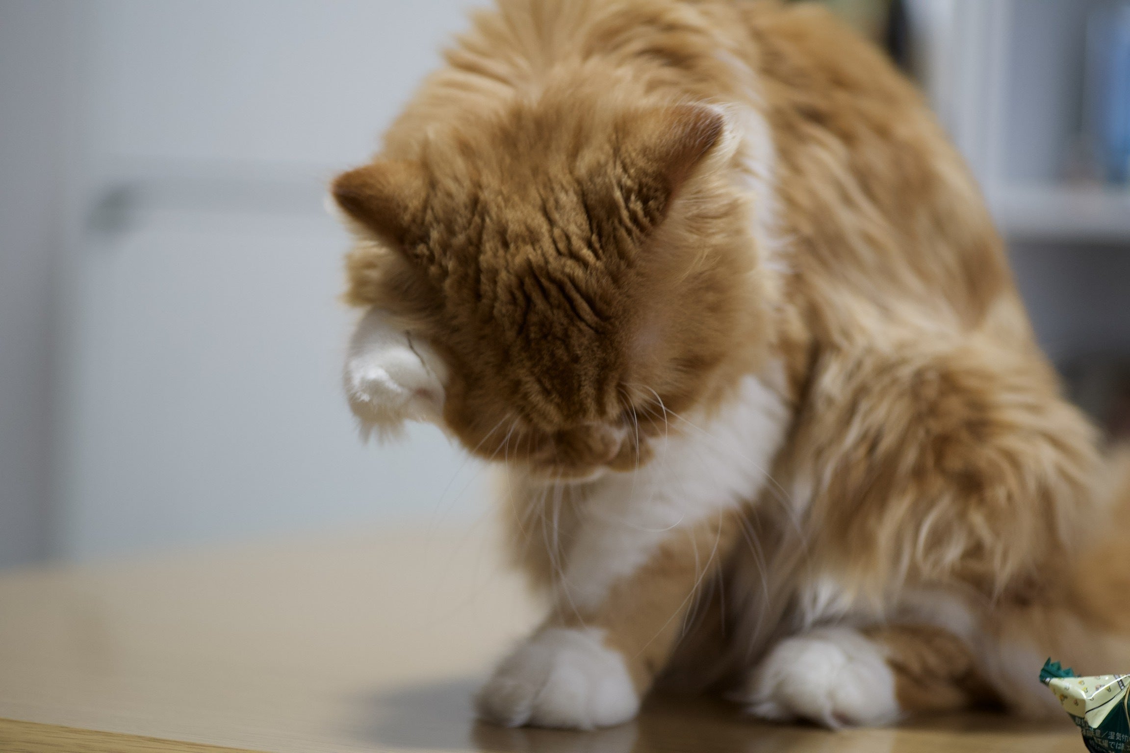茶々丸の生活や症状についてお話させてください。7月中旬頃から、おてんばな性格の茶々丸は急にご飯の量が減りお兄ちゃん猫である松風との喧嘩がパタリとなくなりました。毎日、寝てばかり、動きは鈍い、目はいつもきつい目をしていて、顔つきも変わってきました。他にはトイレの砂を食べだしたり、排尿後が上手に処理できずあちらこちらについた跡があったり、嘔吐が稀に見られたり、抜け毛が異常だったりの症状が見られました。
