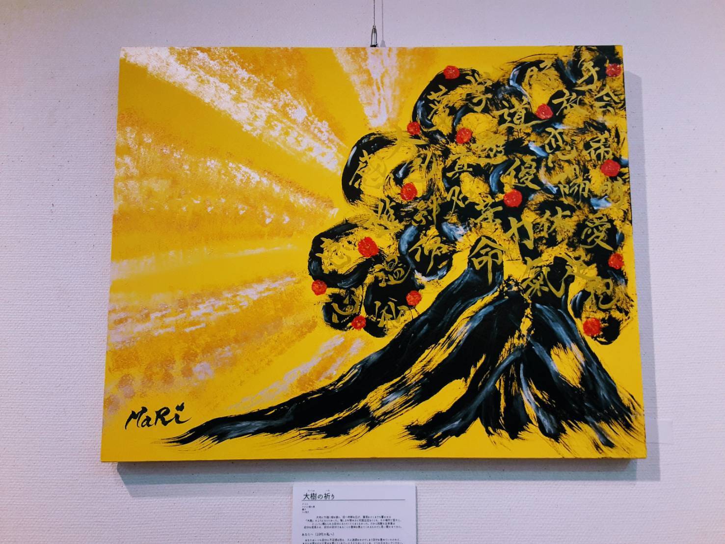 2018年 自分に芽生えた想いを大切にする「未来予約 Lesson」開設。 枠にとらわれない自由な思考に触れる「筆 art 教室」開設。 Mariart♡として、イベントに出店。お客様から感じる文字や世界観を その場で描き、今必要なメッセージを伝える。また、名前うた・命名書 各種お祝い等、お客様のご要望に添った作品の制作、販売。