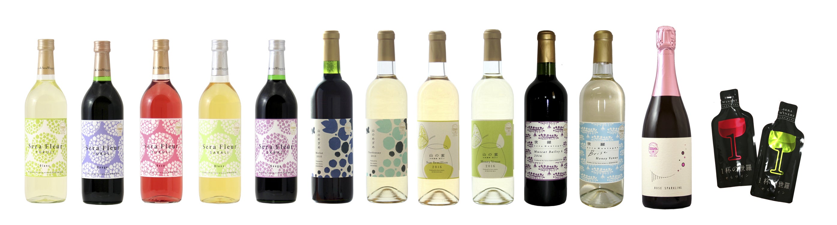 日本で造られたワインの約75%は、外国から輸入した濃縮果汁から造られています。せらワイナリーでも開園当初は、原料に他産地のブドウも使っていましたが、現在は世羅町産ブドウだけでワインを造っています。全ての商品で世羅町産ブドウ100%を実現、日本ワイン「せらワイン」となりました。