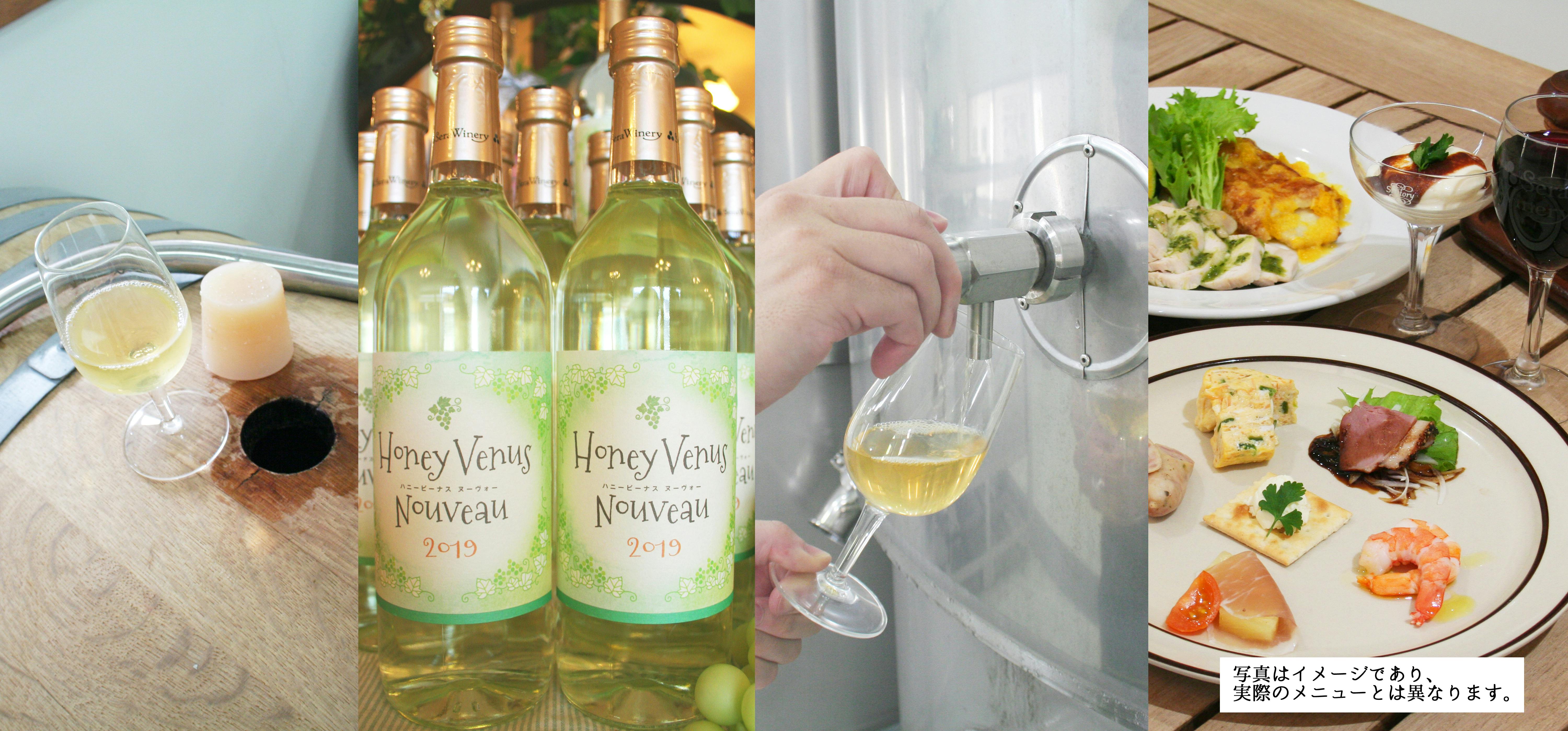 世羅町産ハニービーナス(広島県生まれのブドウ品種です)を、獲れたてブドウの美味しさそのままに詰め込んだ甘口白ワインです。新酒ならではのフレッシュな香りと味わいをお楽しみください。