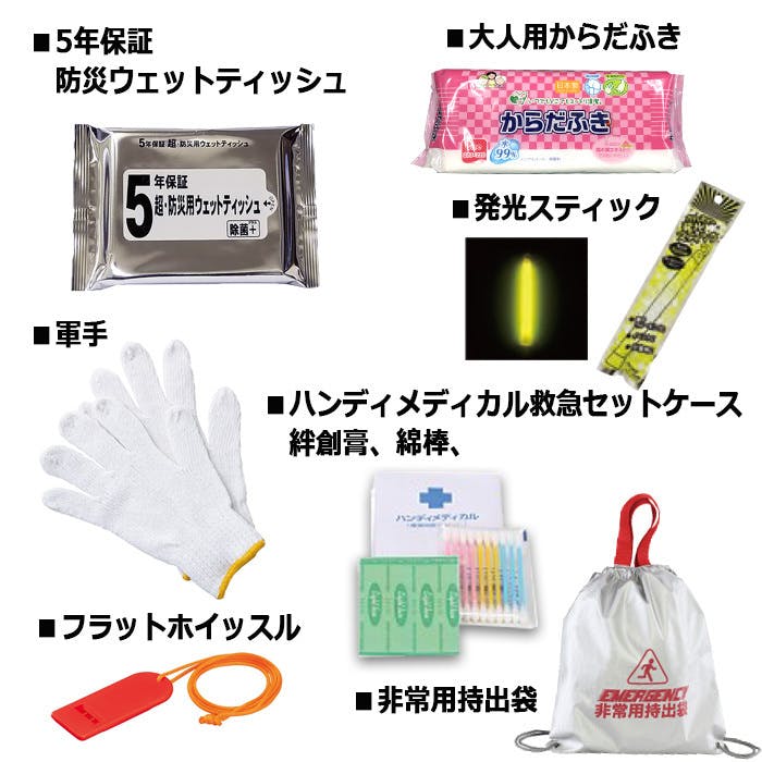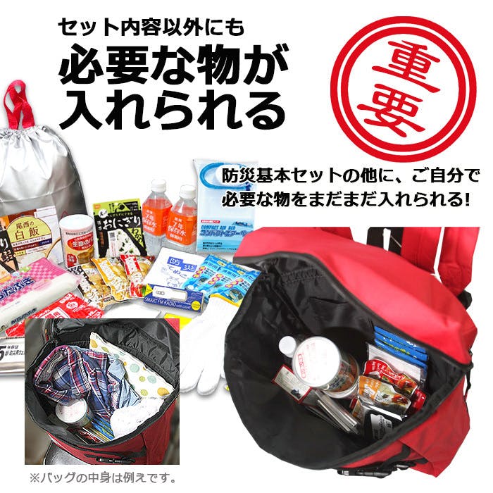 防災セットの他にも、タオル、着替え、常備薬なども入れられます!