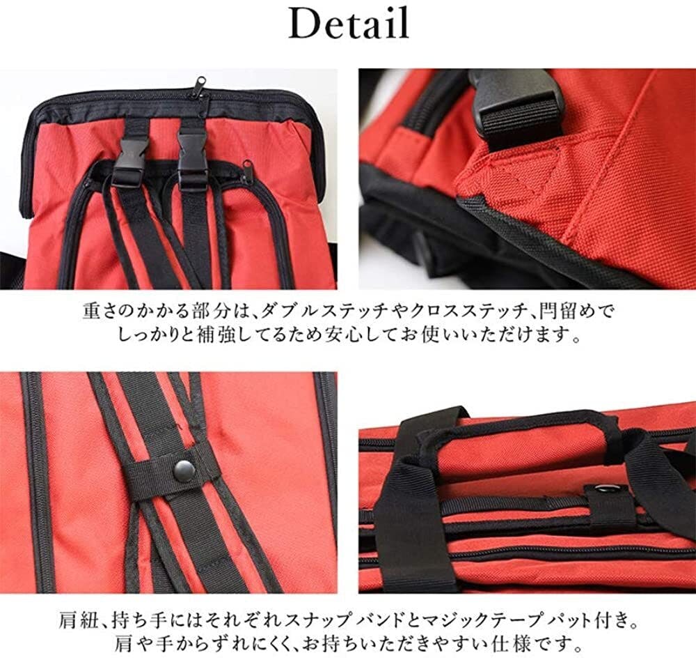 - 素材はポリエステルでちょっとした雨でもOKなように撥水加工されています。
