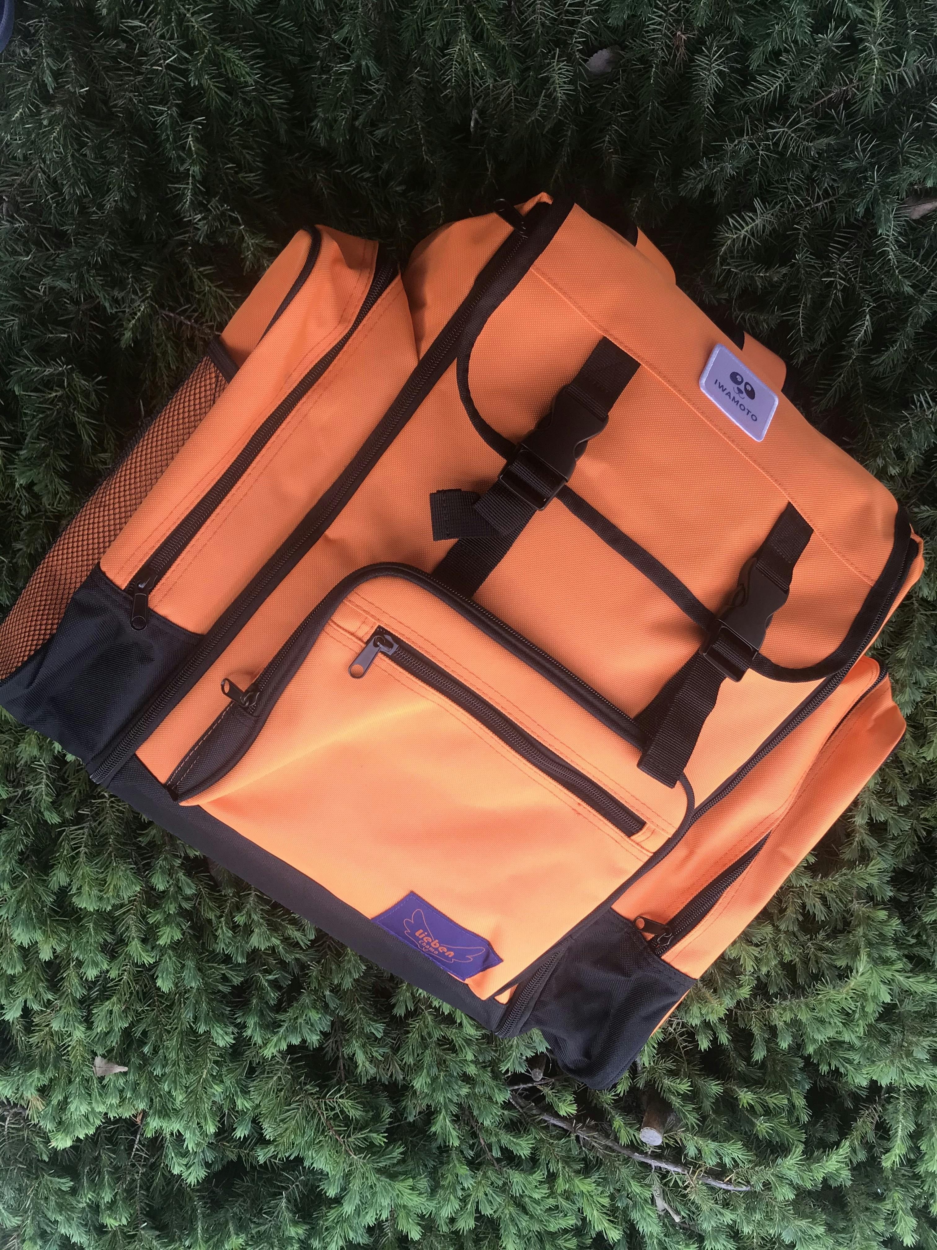 また、防災バッグというと重い印象を抱く方もいるかもしれませんが、リーベンチャマ の鞄の特徴はなんといってもその「軽さ」で、ベースとなるポリエステルの加工に工夫を凝らすことで軽量化を図っています。 -