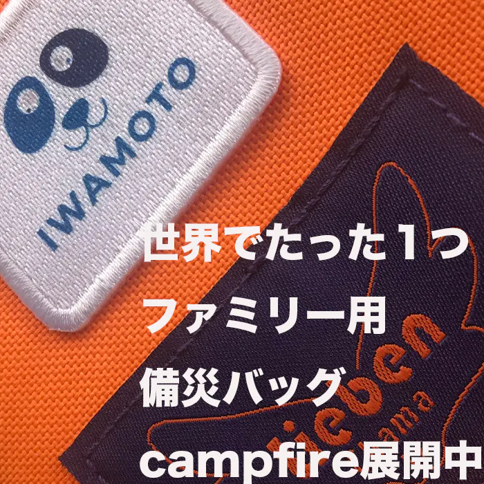 最終的にこのワッペンを縫製してパーソナライズされた備災カバンをお届けさせて頂きます。