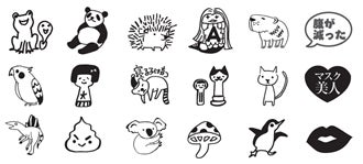 まさにSNS時代のスタンプセットです。このマスクを着けて投稿したら注目度抜群かも・・。