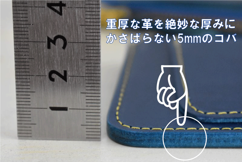 台形ポケットインは【1枚の分厚い革がポケット】になっているので手触りは重厚な5mm厚。ここが頑丈ポイント!でもパーツを重ね合わせて作る財布としては5mmは薄く使いやすいです。