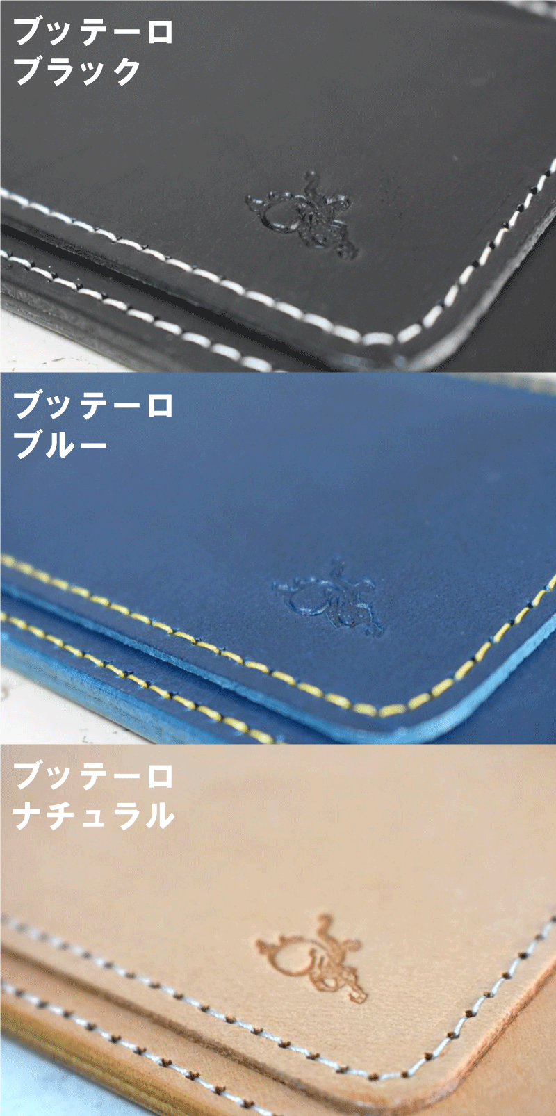 ・PCやスマホ環境により製品の色合いに差がある事をご了承下さいませ。またブッテーロは職人の手仕事により染色されている1点物の革素材の為1つ1つ個体差がございます。