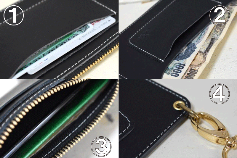 ①ライセンスポケット:よく使うカード入れに推奨します。