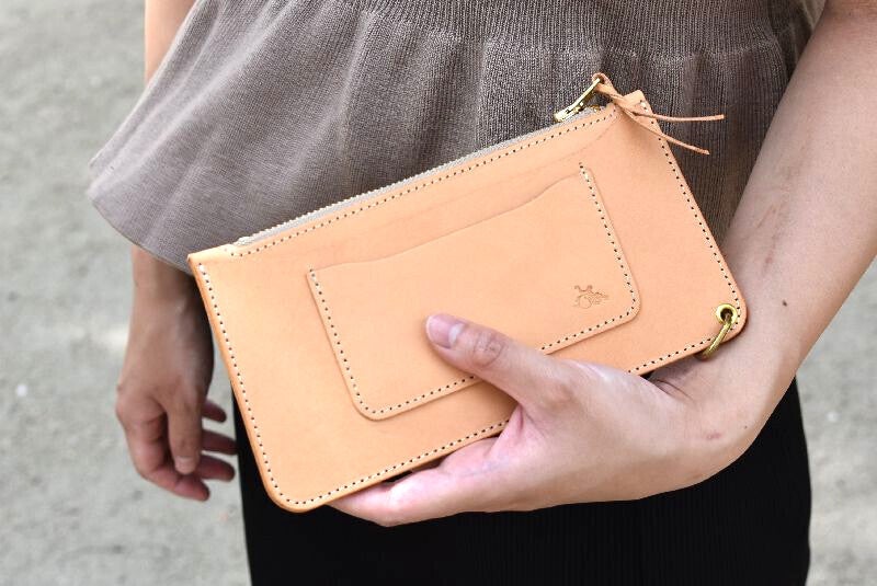 (画像はスモールポケットイン)画像でも伝わるイタリアレザーの張りつめた質感!