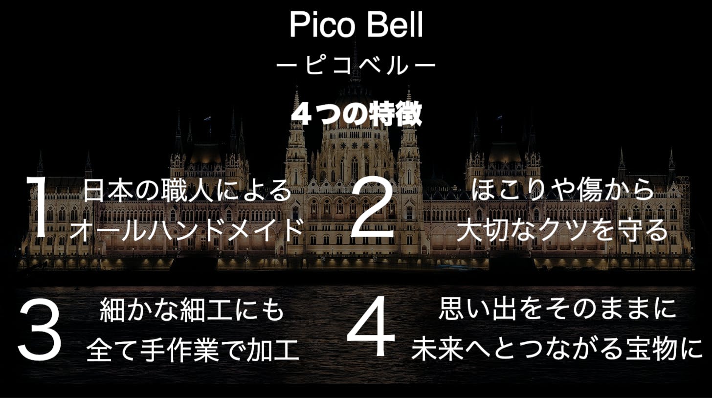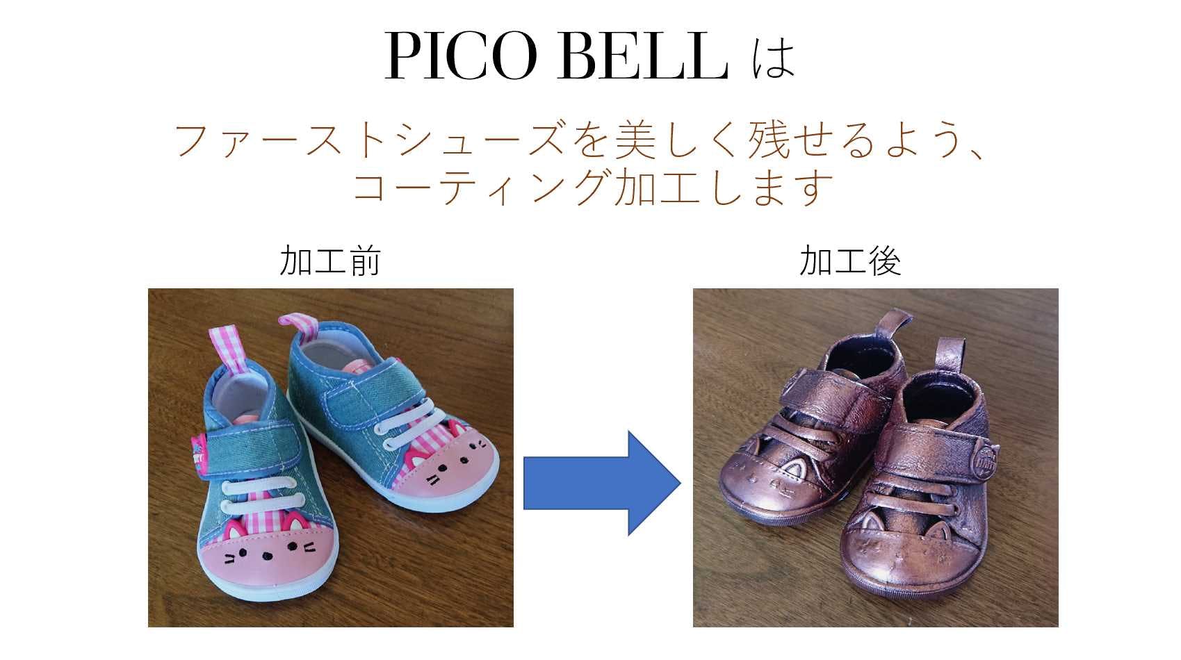 子どものファーストシューズ「捨てたくない」という思いから、飾れるファーストシューズ「PICO BELL(ピコベル)」を開発致しました。
