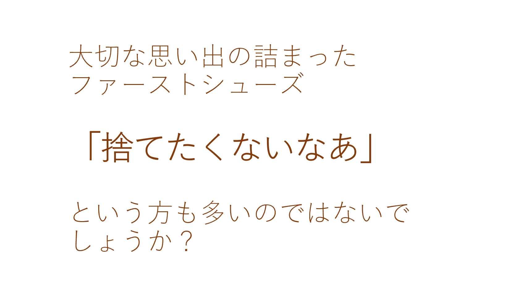 日々成長されるお子様と、小さかった頃の思い出をそのままに残せるメモリアルシューズをご一緒に眺めるひと時は、何より幸せなものです。
