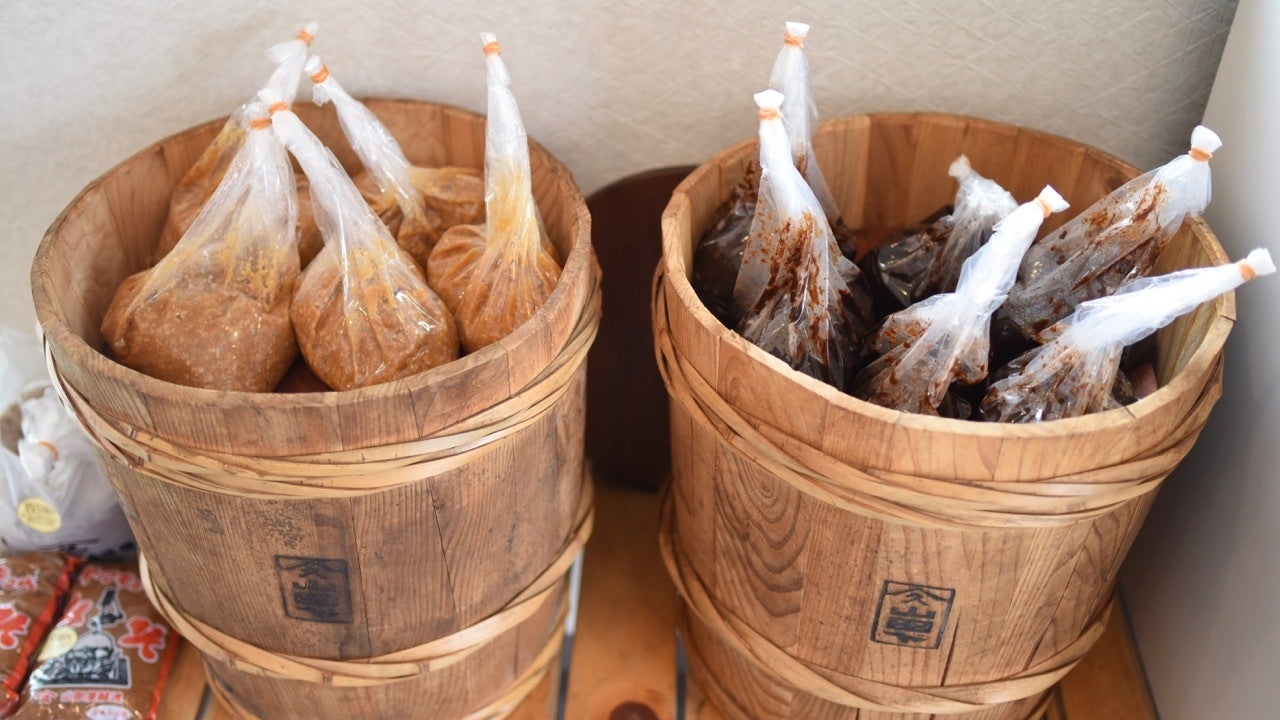 例えば、東日本で売られている米味噌の多くは大豆とコメの比率が10:8の「8歩麹」です。当店でも「からくち」として販売しているのがこちらの味噌です。例えばさんまのつみれ汁のように、味の濃い具材や野菜と一緒に味噌汁にすると、ちょうど良い味加減で召し上がることができる味噌です。味噌にも食材の向き不向きがあるんです。