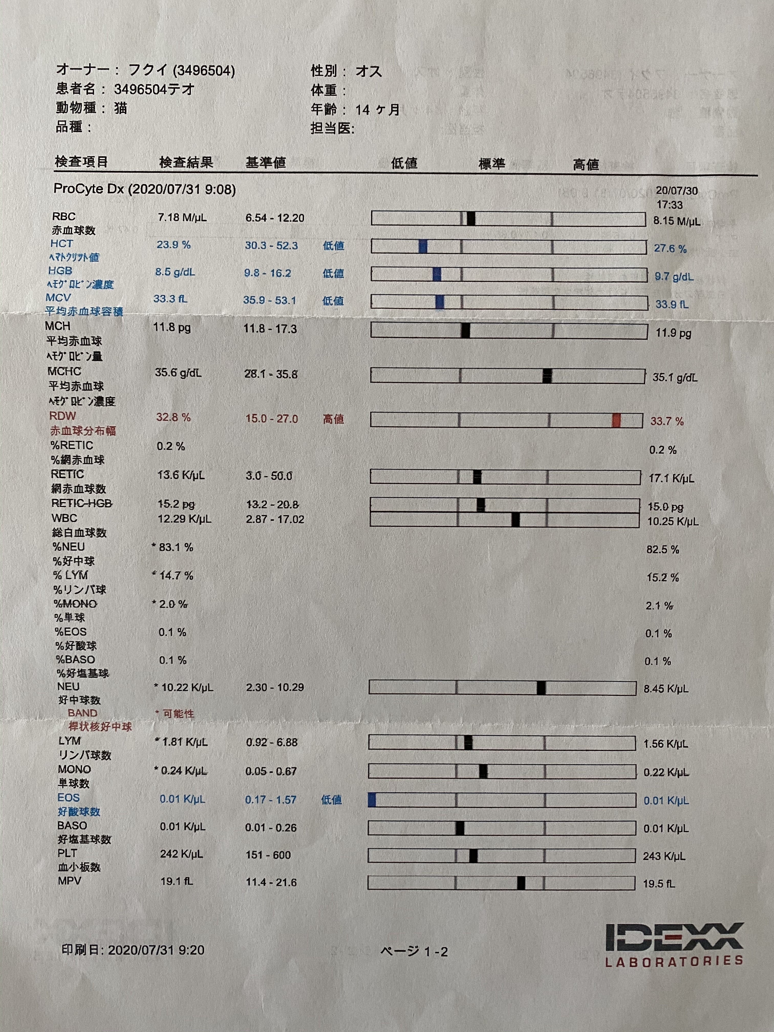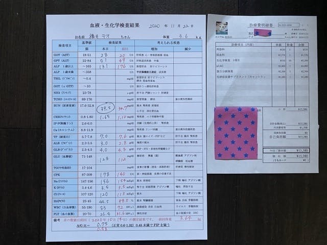 2020/11/22 12:38本日定期検診を受けに動物病院に行きました。結果は◎、AG比の数値も良くなって今の所順調です。次回は2ヶ月後になりました。ただ一点気になる数値があります。BUN(尿素窒素)が高めです。腎疾患などが気になるので、後日尿検査予定です。あと、便秘はチューブのサプリとカリカリを変えて様子を見ます。また、ご報告します。ありがとうございました。 もっと見る