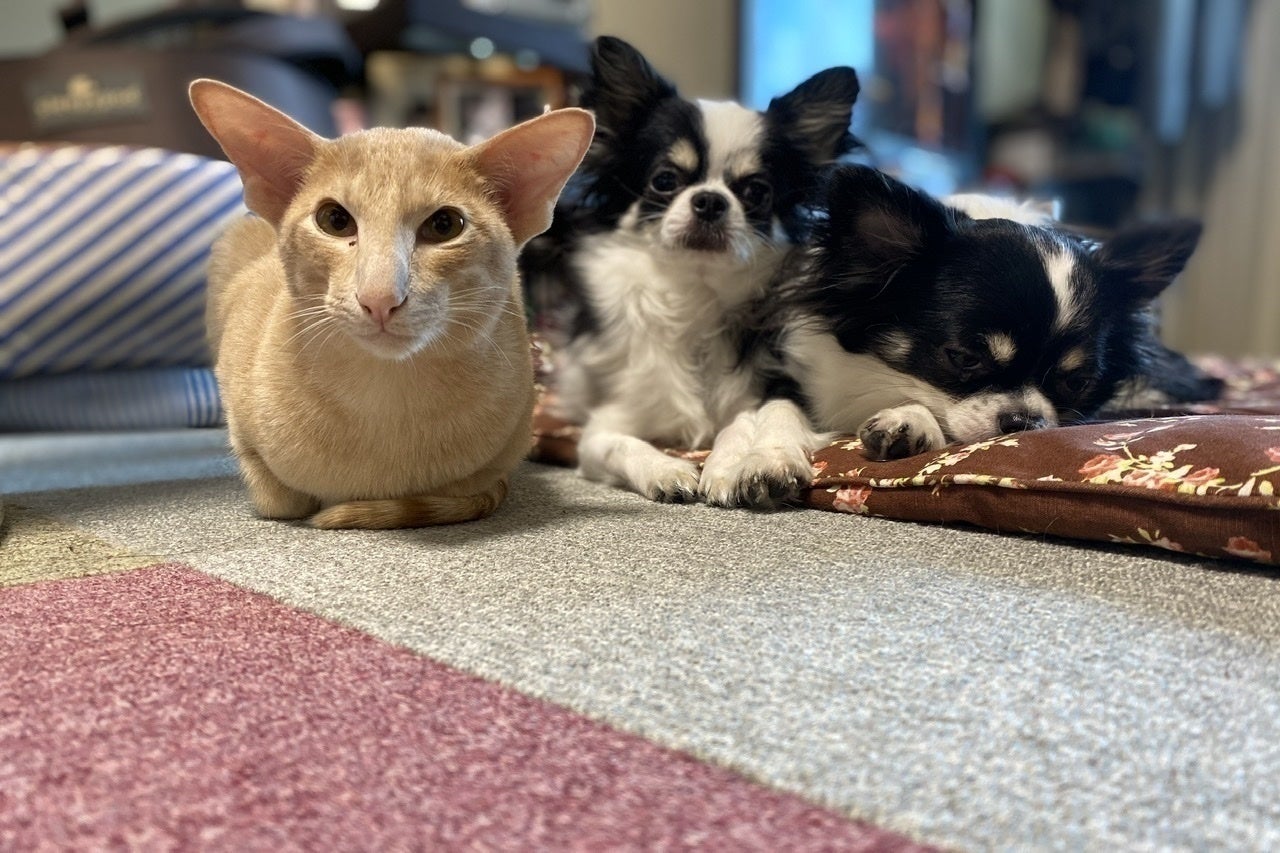 家族構成は1歳2カ月になるオリエンタルシートヘアの男の子(FIP発症)とシャム猫♂チワワ♂(2頭)私と妻と娘で、ペット4頭+3人の家族になります。