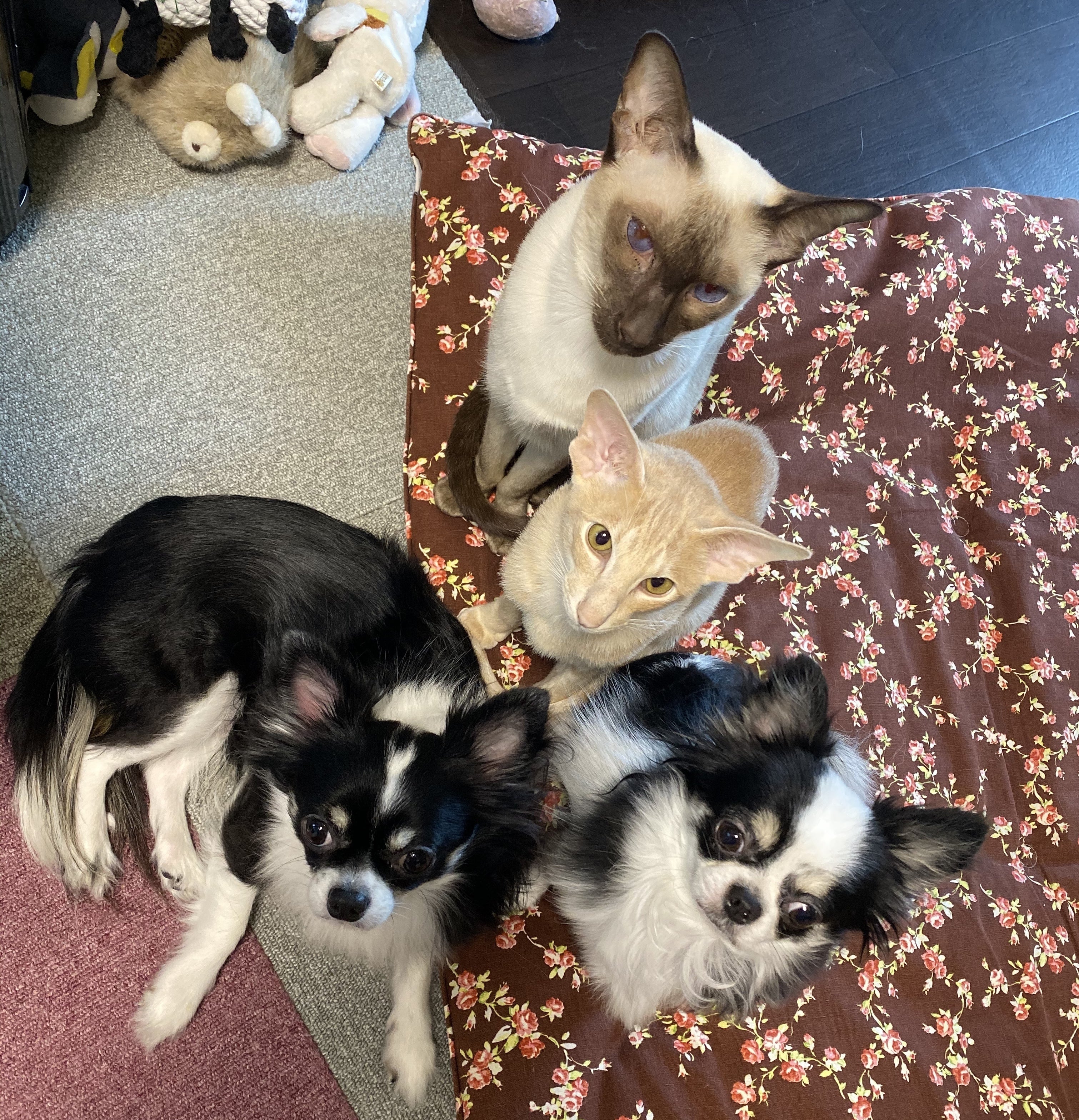 家族構成は1歳2カ月になるオリエンタルシートヘアの男の子(FIP発症)とシャム猫♂チワワ♂(2頭)私と妻と娘で、ペット4頭+3人の家族になります。
