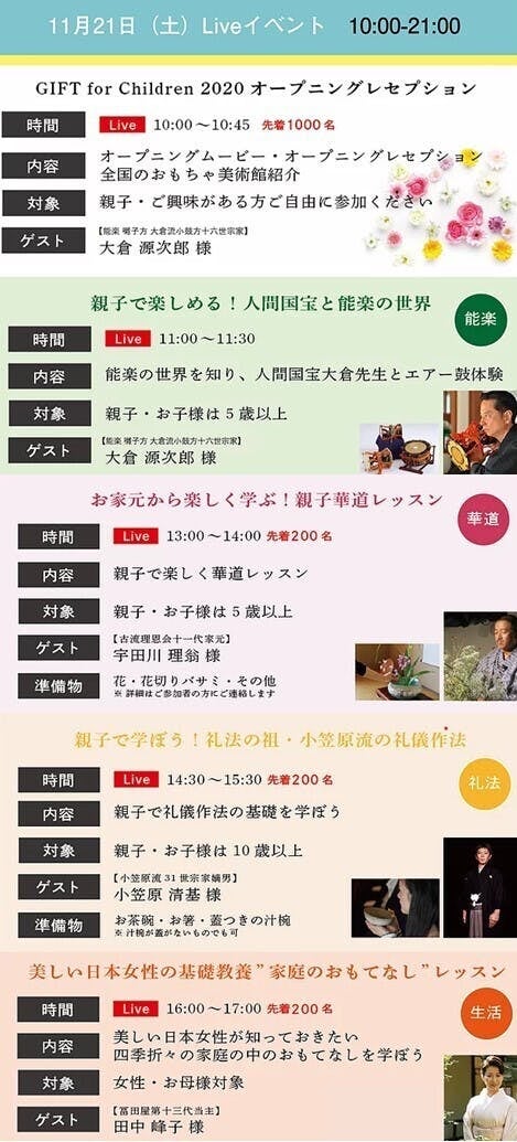 由緒ある各界の家元のみなさんの子どもたちへの想いから生まれた企画です。