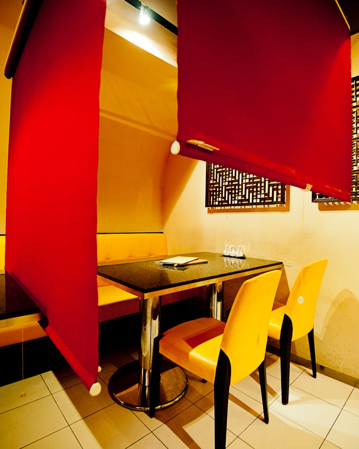 当店舗の真っ赤なドアを開けると黄色を基調とした高級感漂う空間が広がります。
