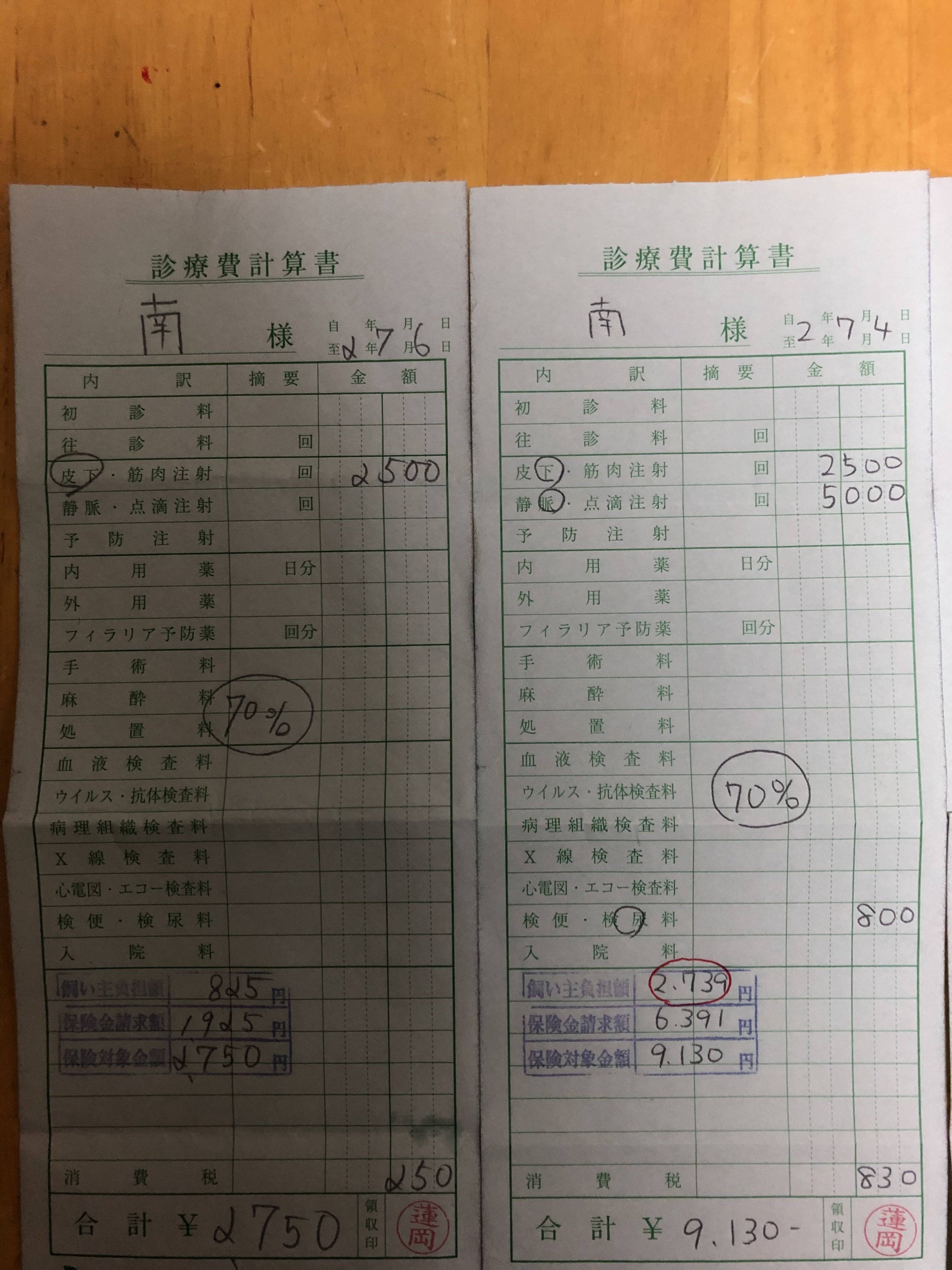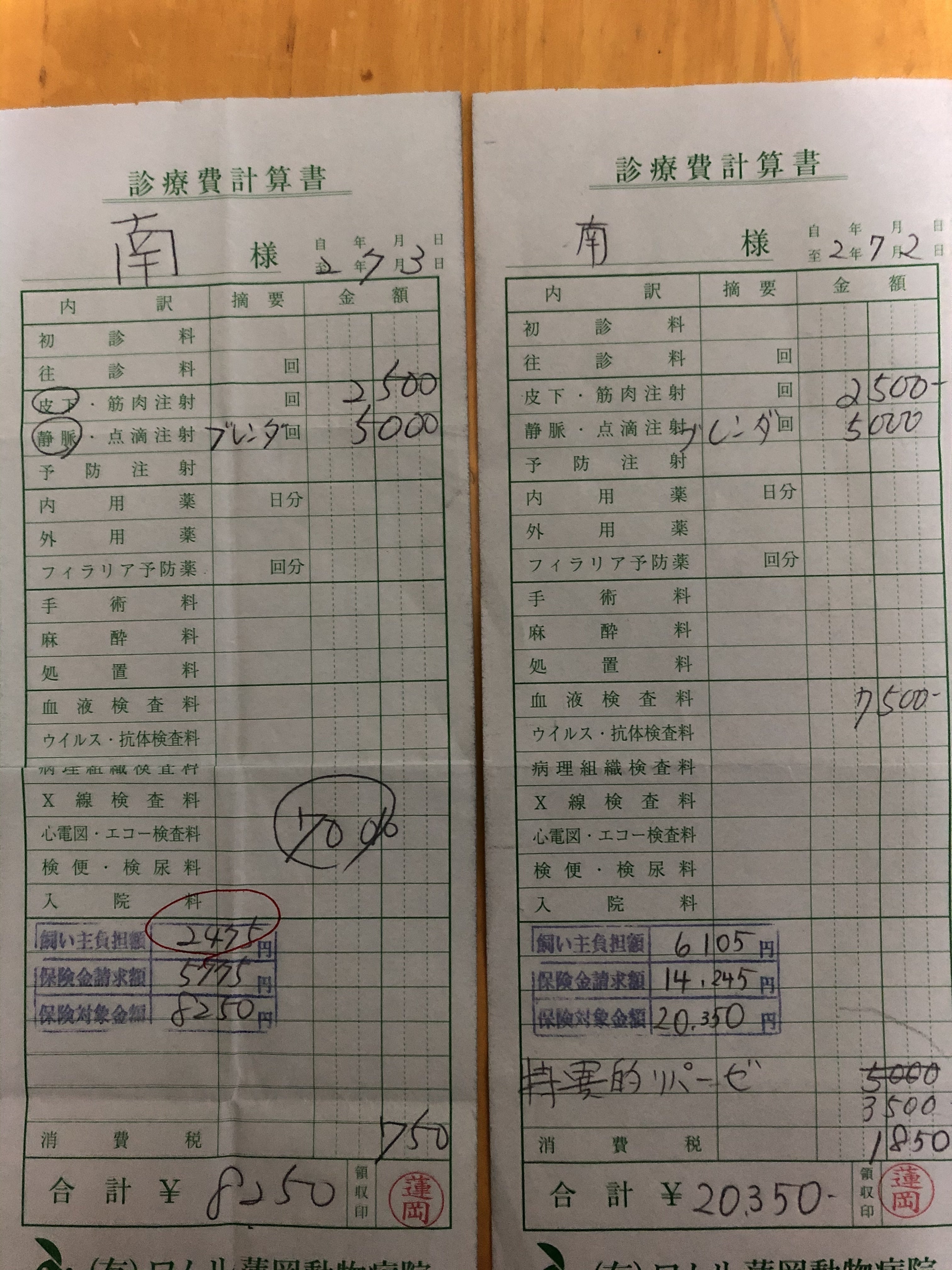 7月2日 膵炎を再発。血液検査とブレンダを皮下注射して貰いました。