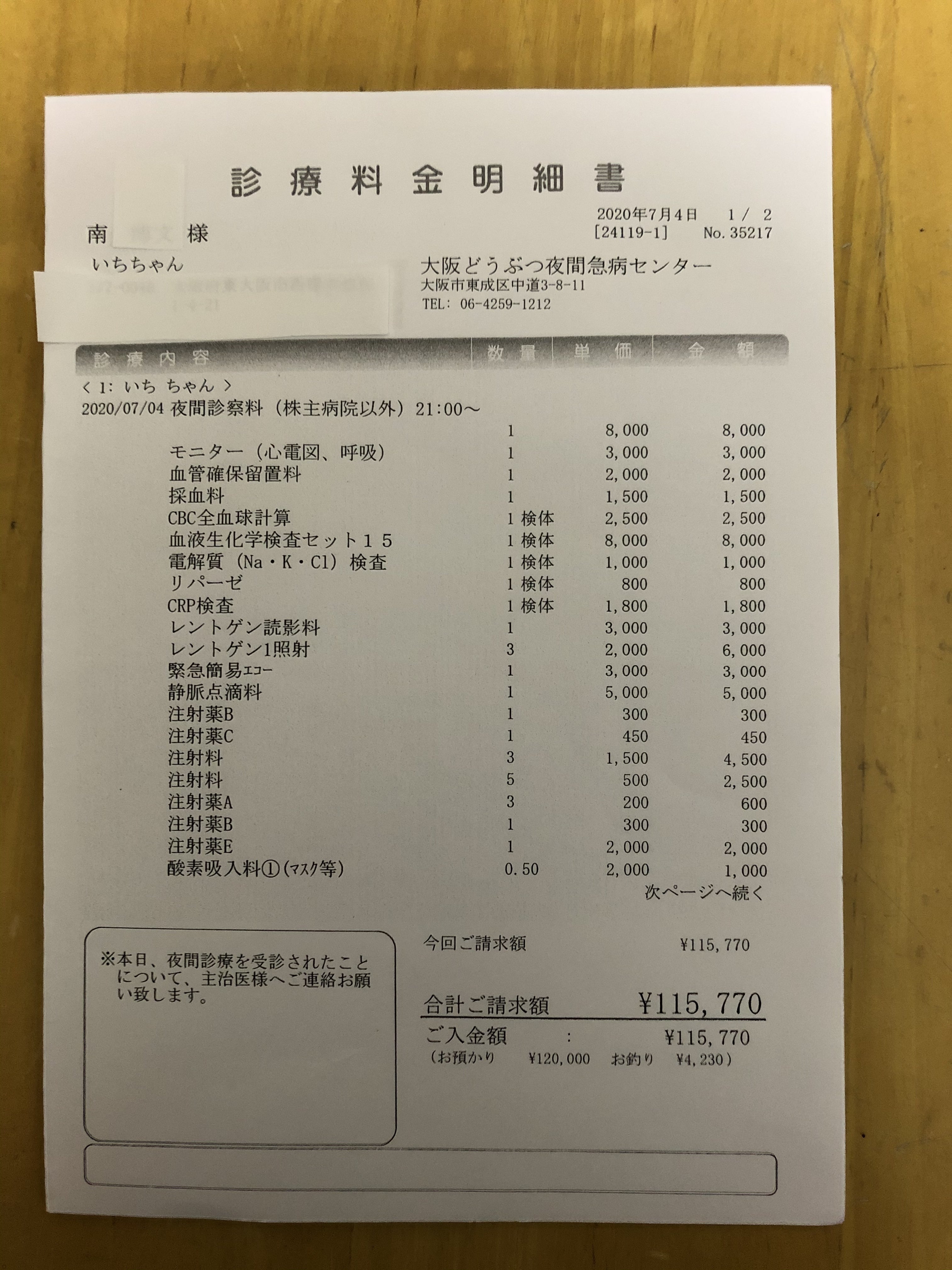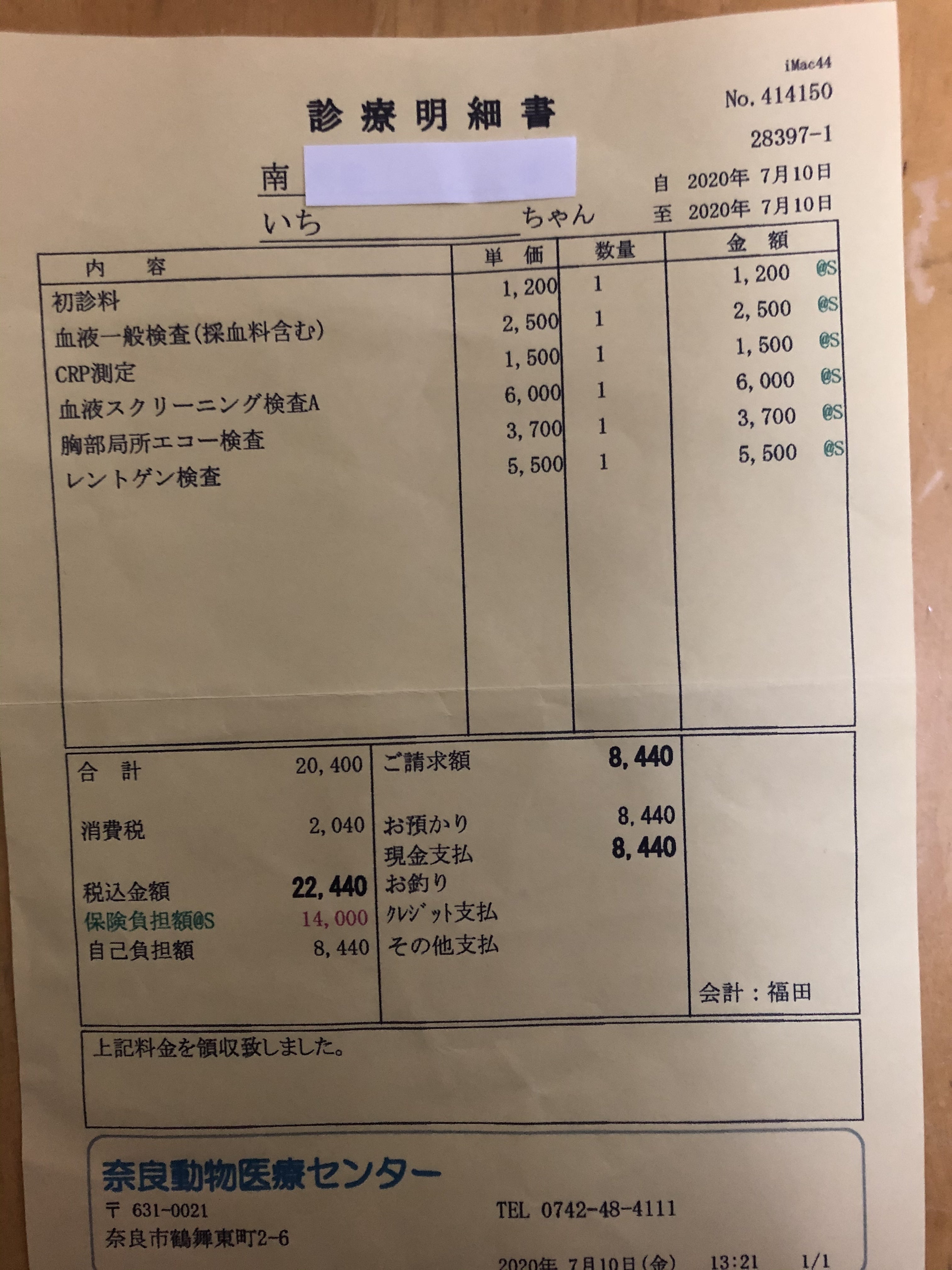 皆様からご支援を頂いたお金は大切に大切に 全ていちの手術費と入院費に使わせて頂きます。