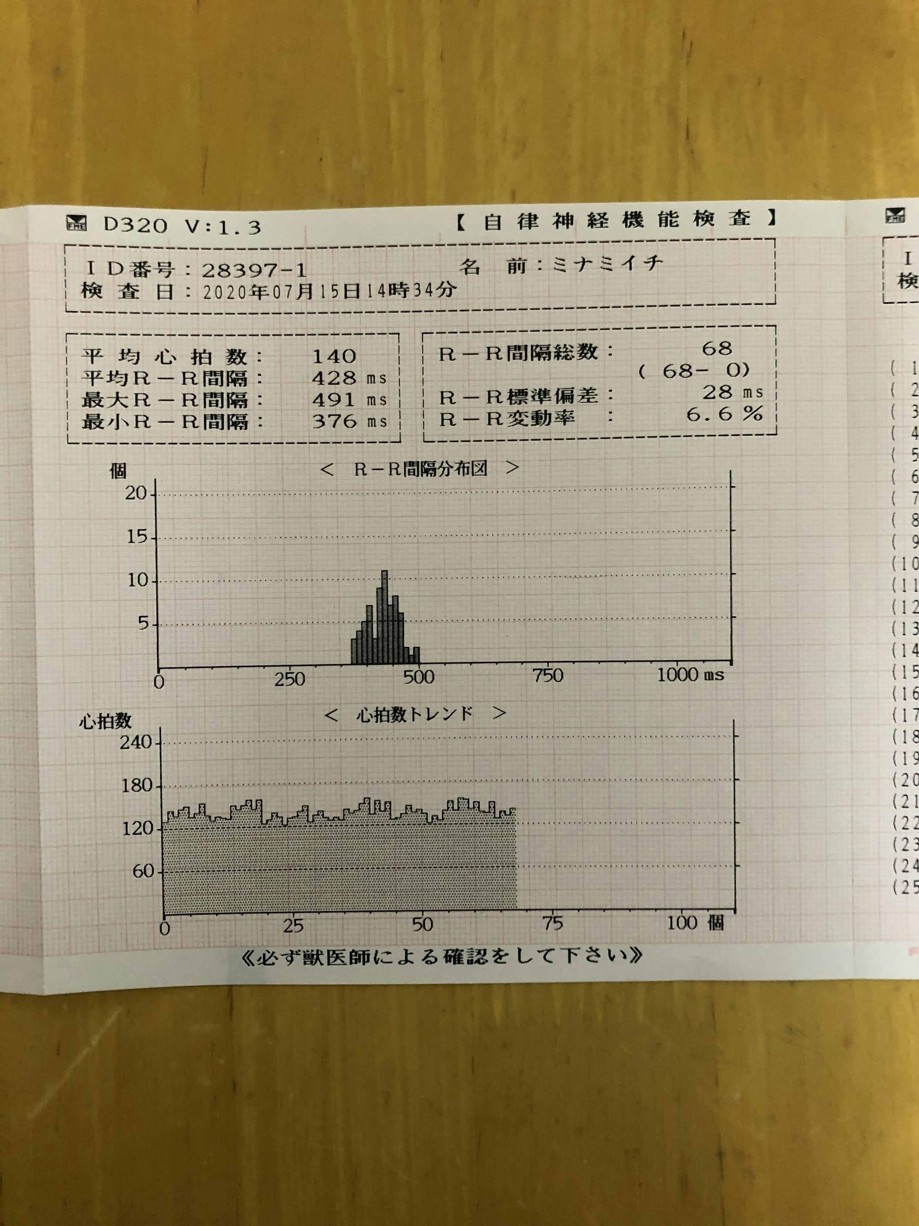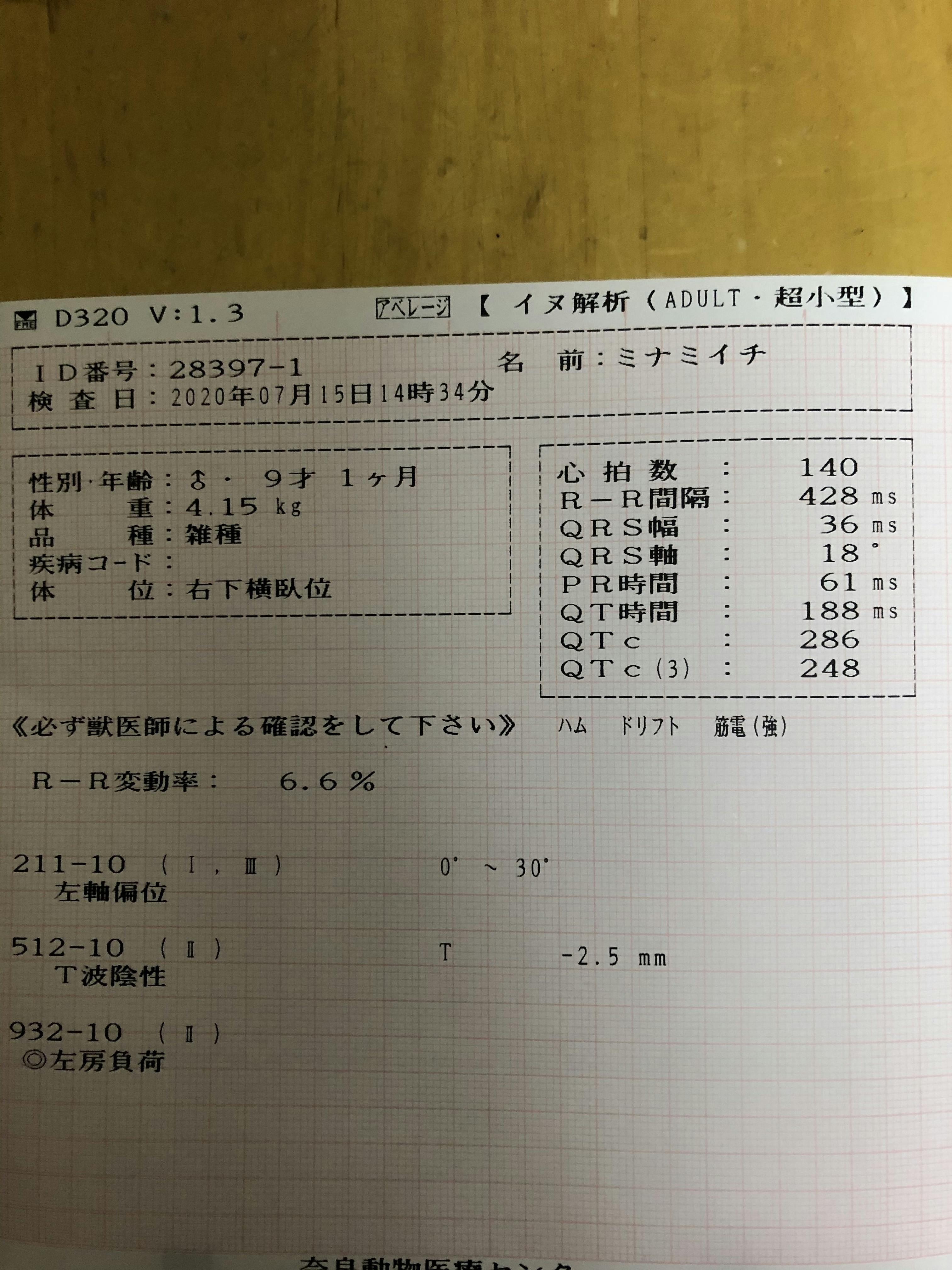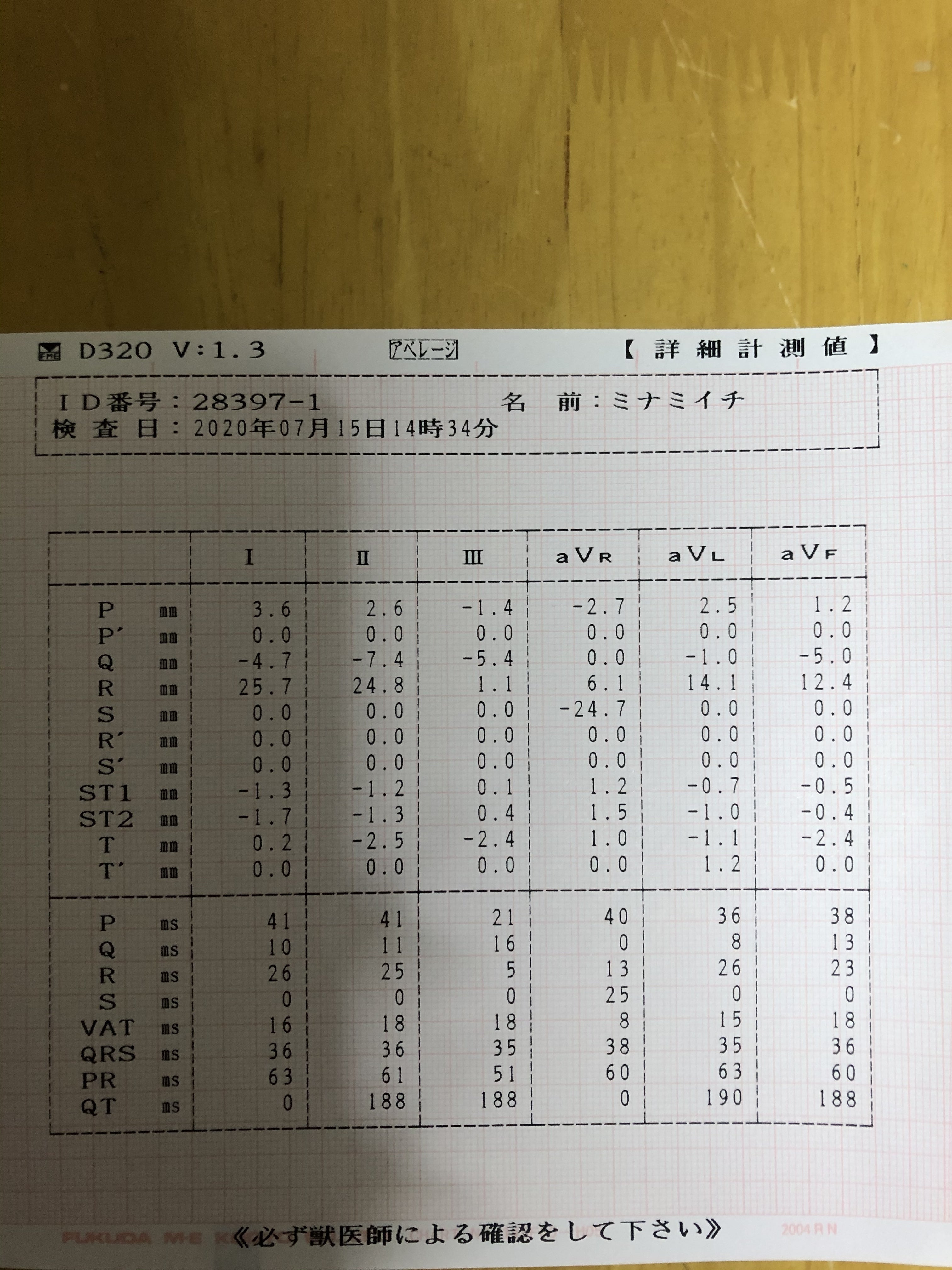 7月15日 尿検査(カテーテル)、胸部エコー、心電図検査、血圧測定、レントゲン検査がありました。