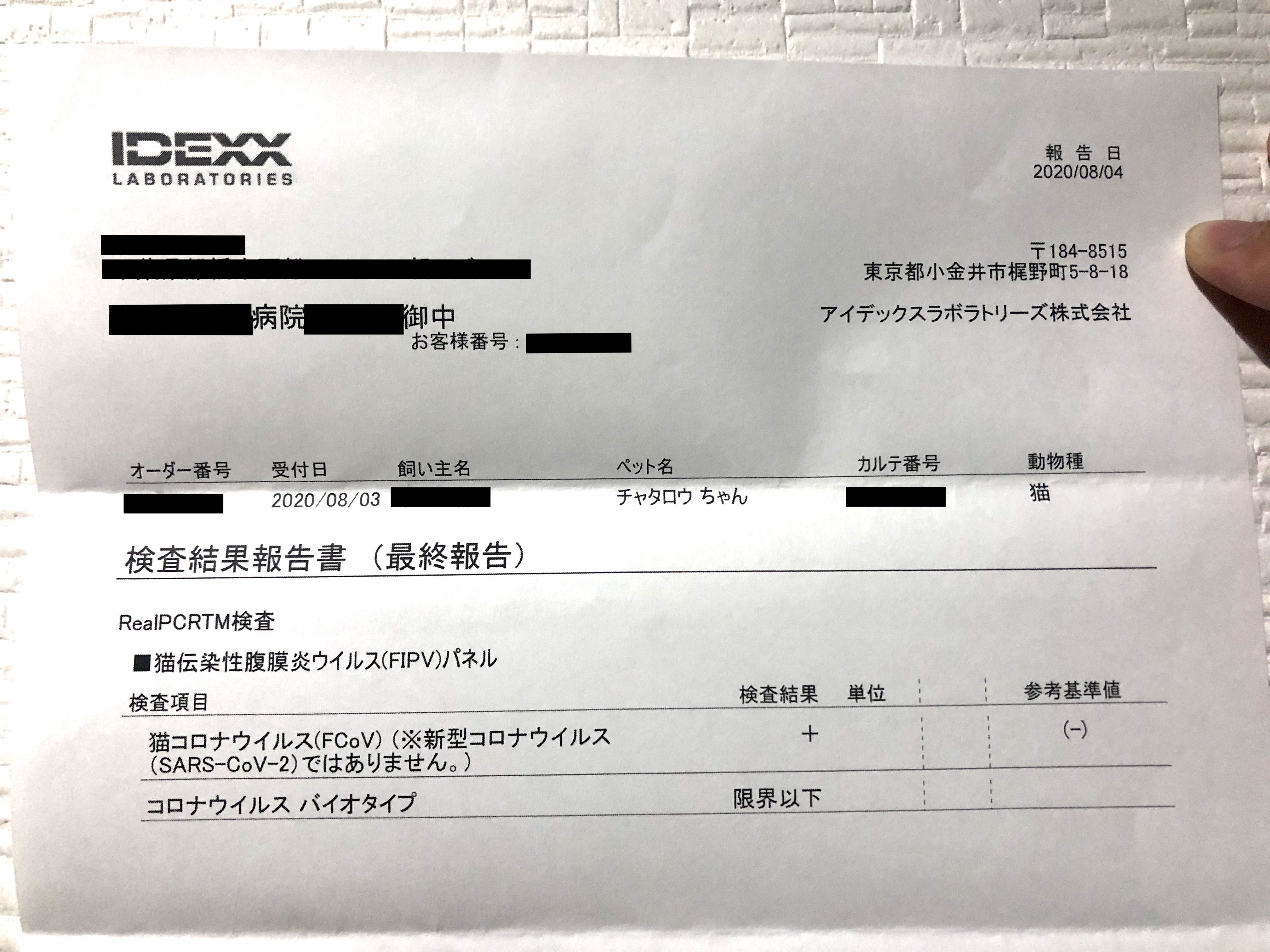 茶太郎のFIP検査結果(掲載許可承諾済み)