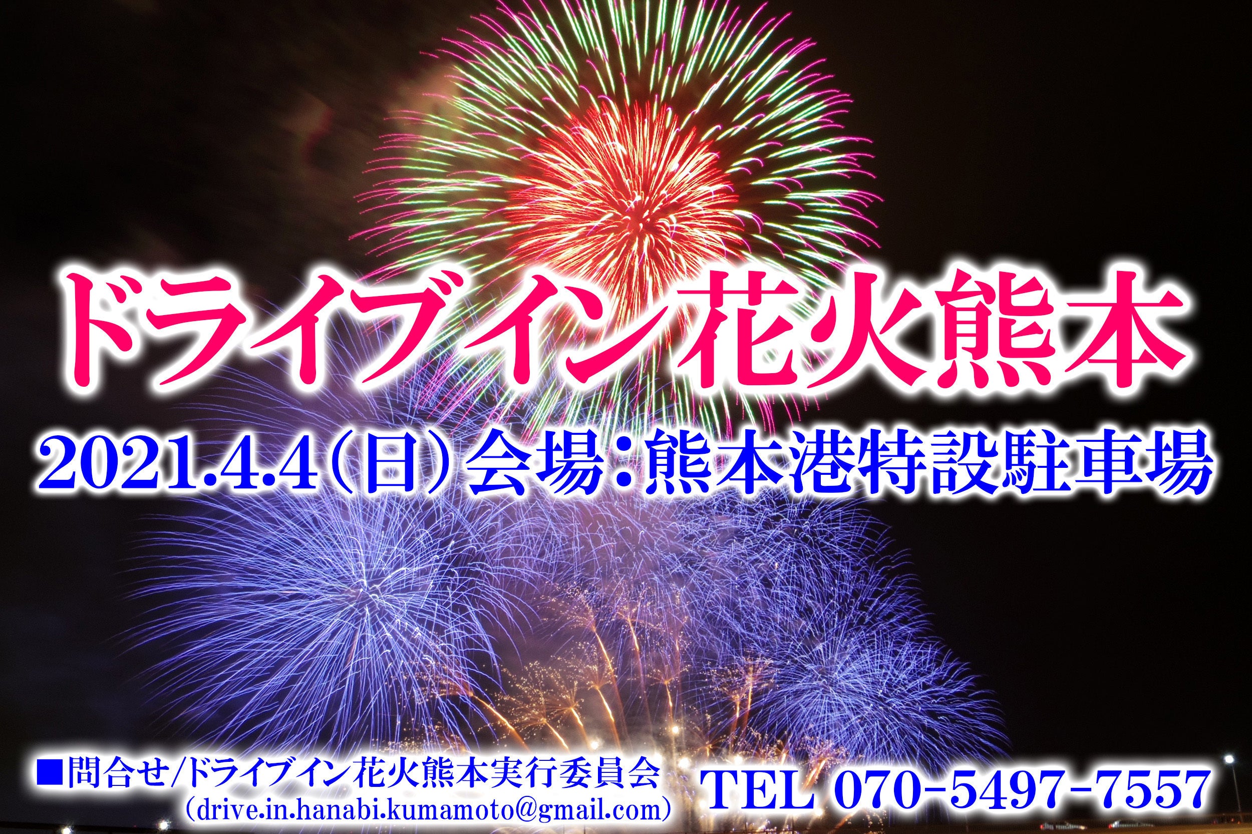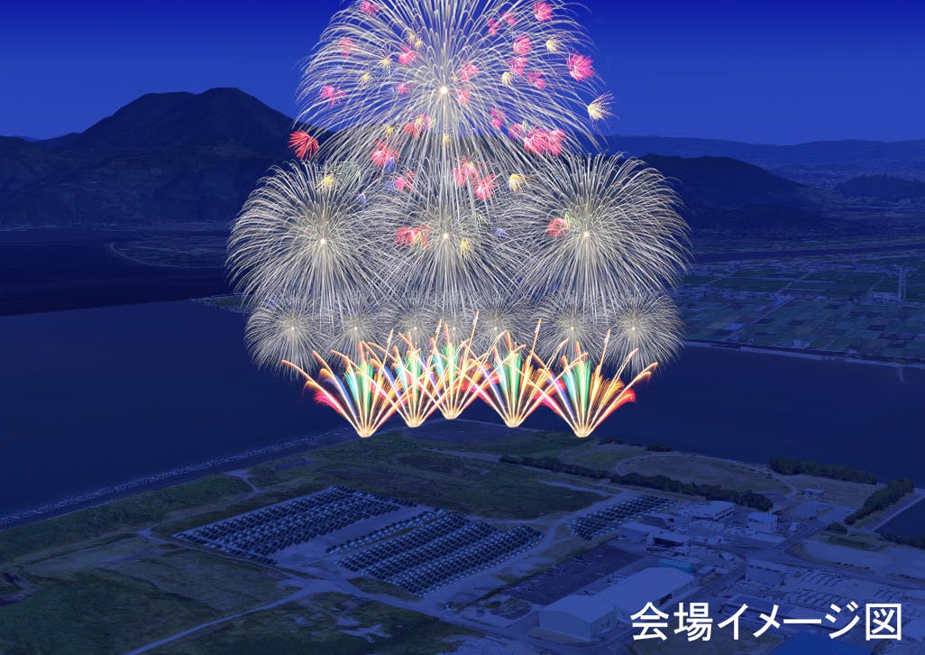 コンサート・祭り・花火大会がなくなり寂しく季節を過ごしている人々に、全国から様々な芸術花火を集め、自然豊かな熊本港の夜空を華やかに彩り、コロナ自粛を頑張っている来場者に、元気と勇気を与えたいと考えております。