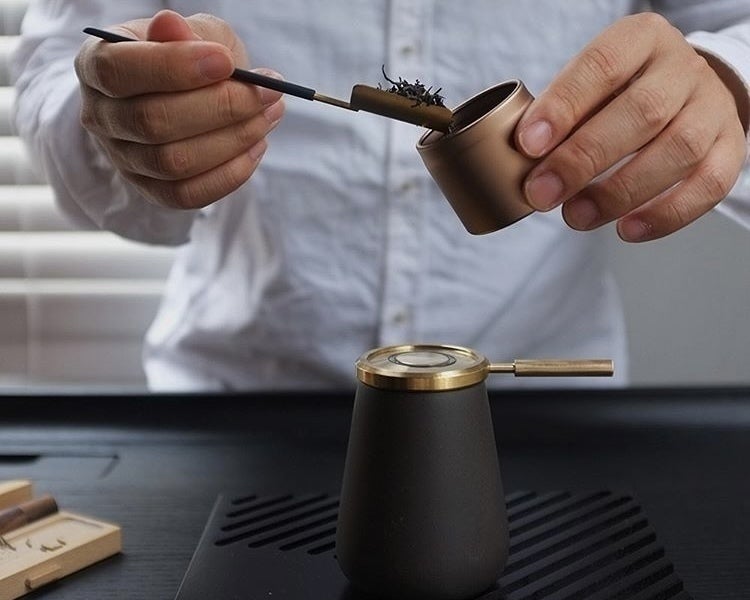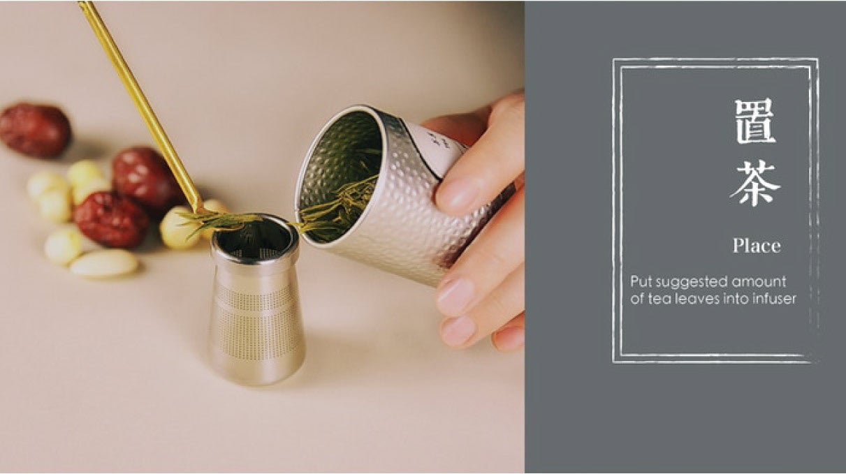 ②続いて、インフューザー(茶こし)へ茶葉を適量入れましょう。