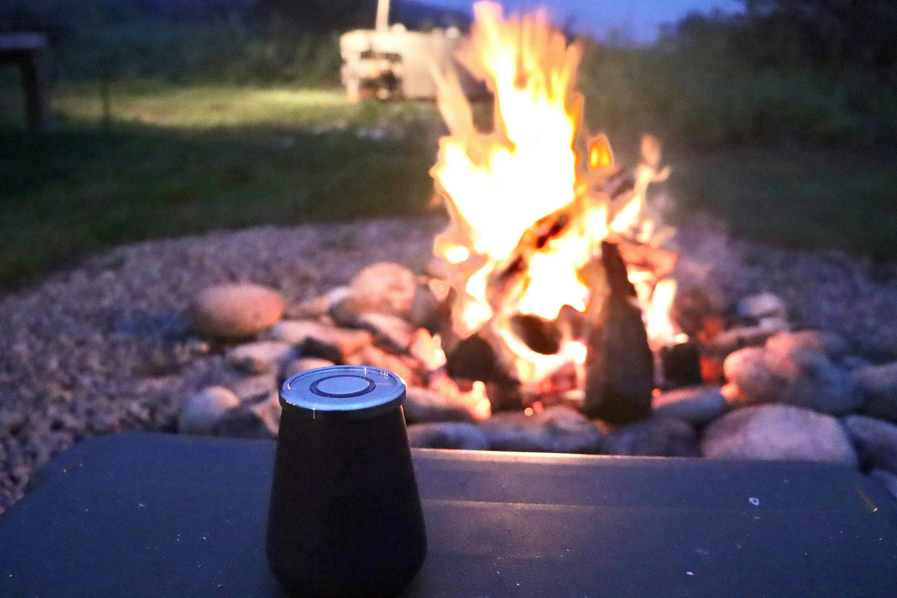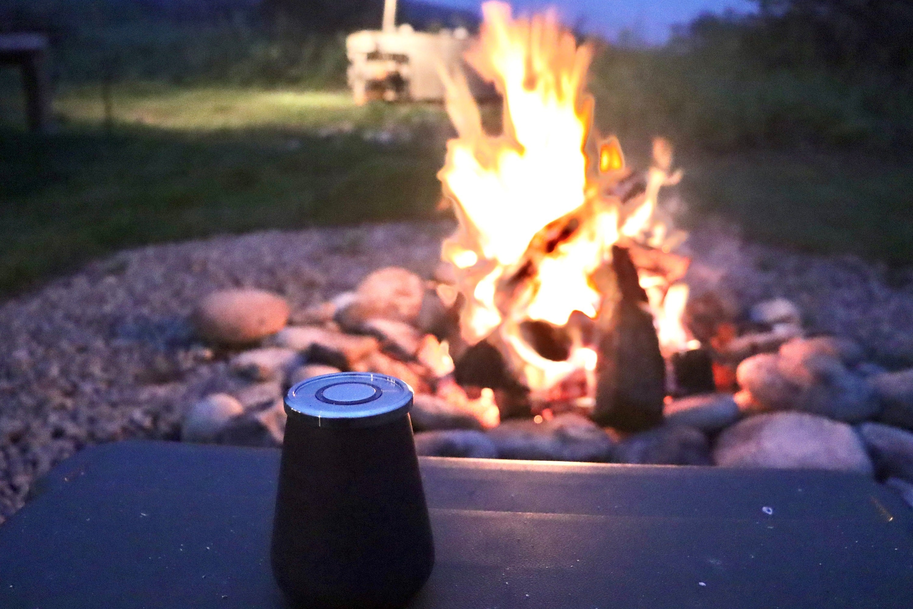 非日常的なキャンプの焚き火の前で一息ついたり。