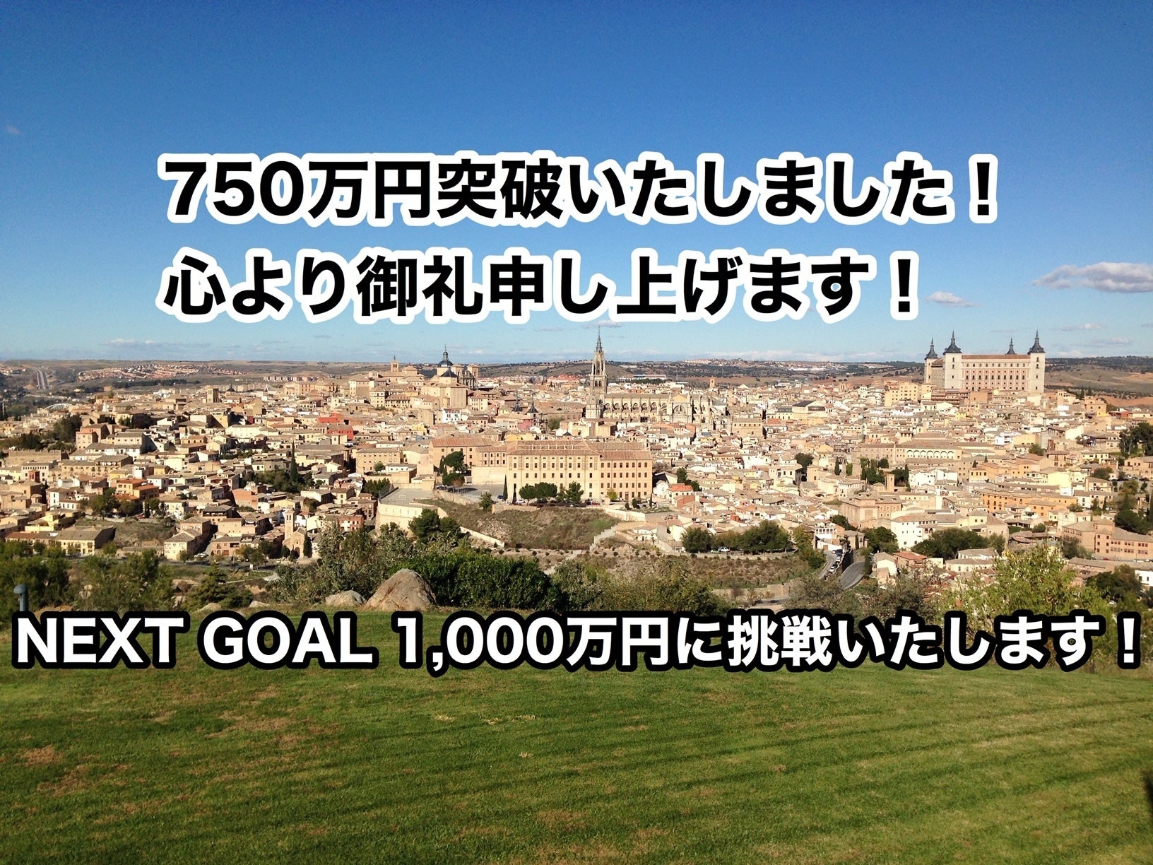 第3のゴールとして掲げていた750万円を突破いたしましたのでご報告申し上げます。