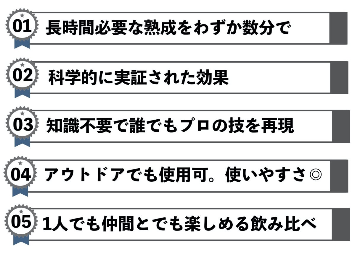 バッテリーを内蔵しているのでいつでもどこでも熟成をお楽しみいただけます。