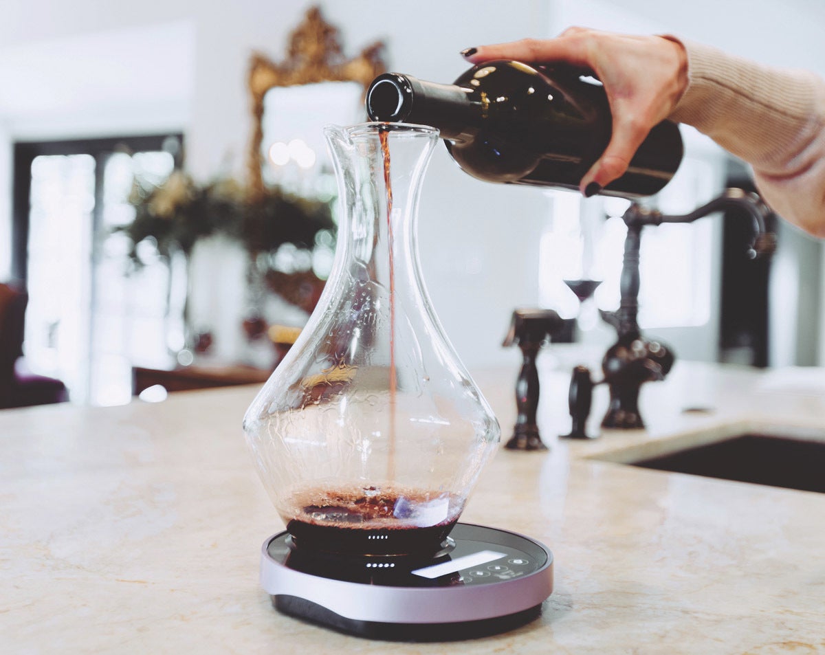 WAKE UP WINE PROは、特許申請中の技術を用い、わずか数分でお酒本来のポテンシャルを極限まで引き出す、魔法のような熟成デキャンタです。