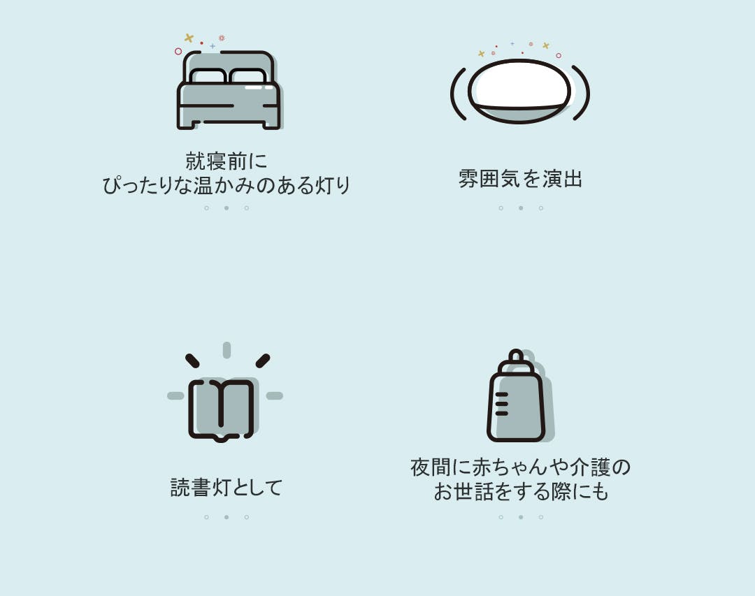 就寝前のスマホ使用時などの手元にも目にやさしい灯りをお届けします。