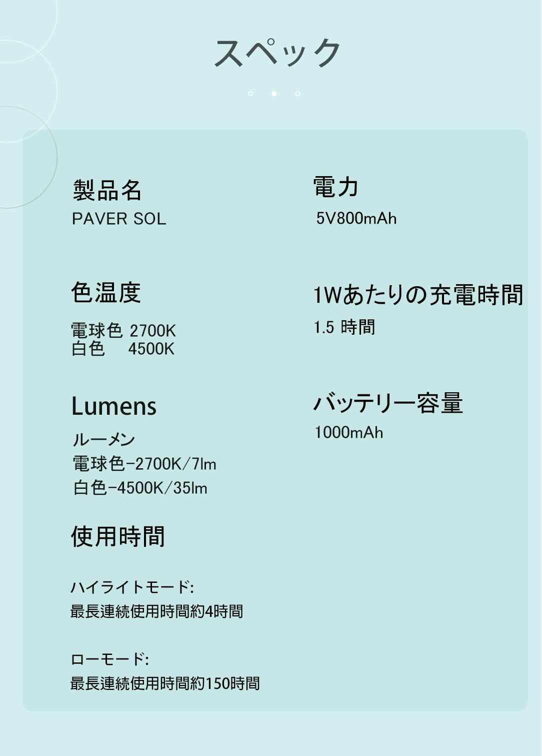 PAVER SOL (ペイバーソル)はナイトライトとして、雰囲気を高めてくれる灯りとして、読書灯として、さまざまなシーンで活躍してくれます。