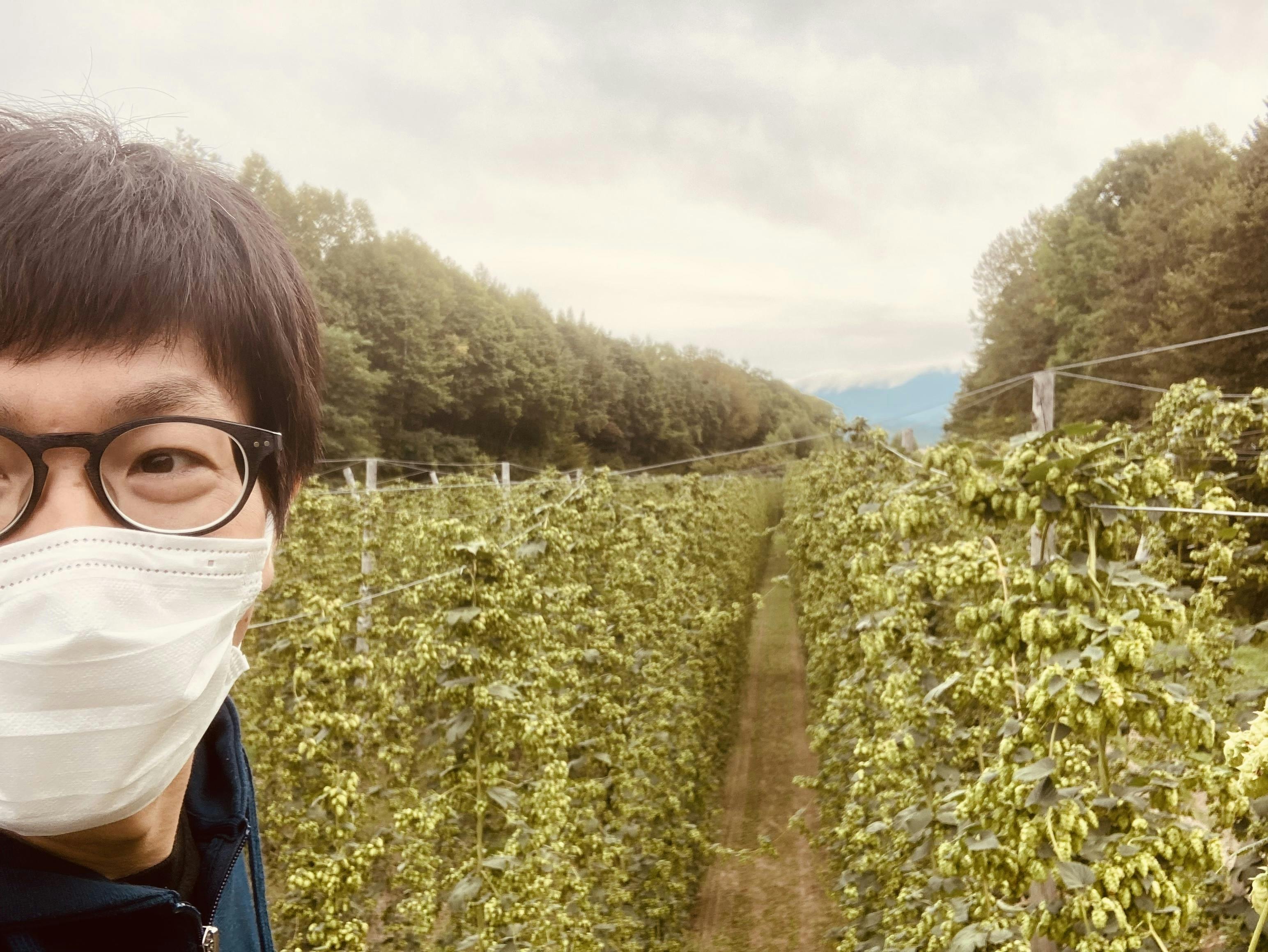 本日9/8は朝から、上富良野町のホップ畑に来ております。