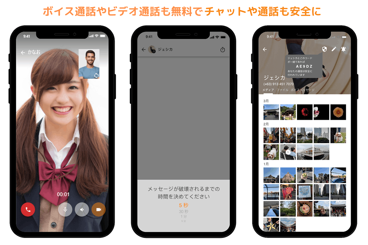 ・すべての通信はデバイス間エンドツーエンドの暗号化通信